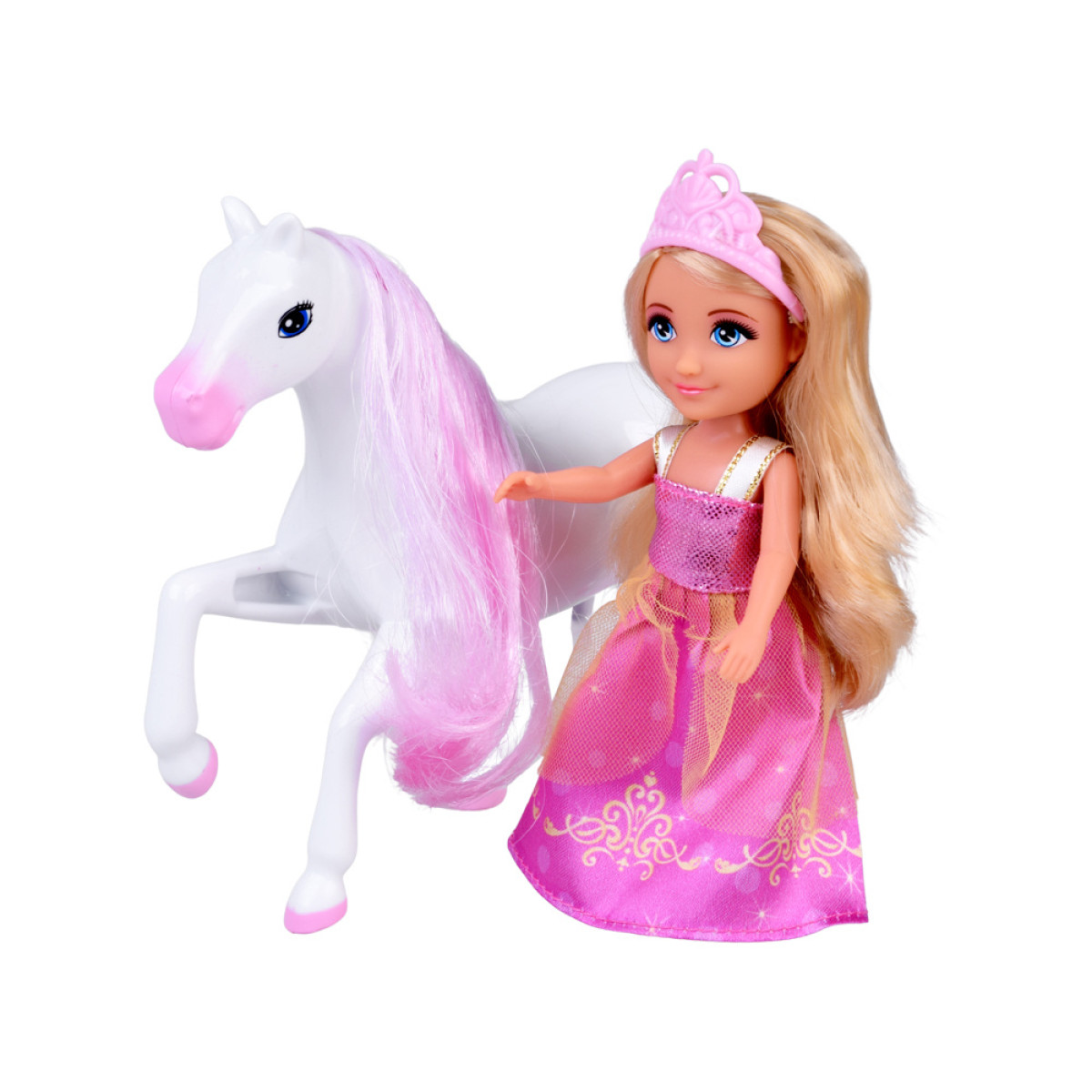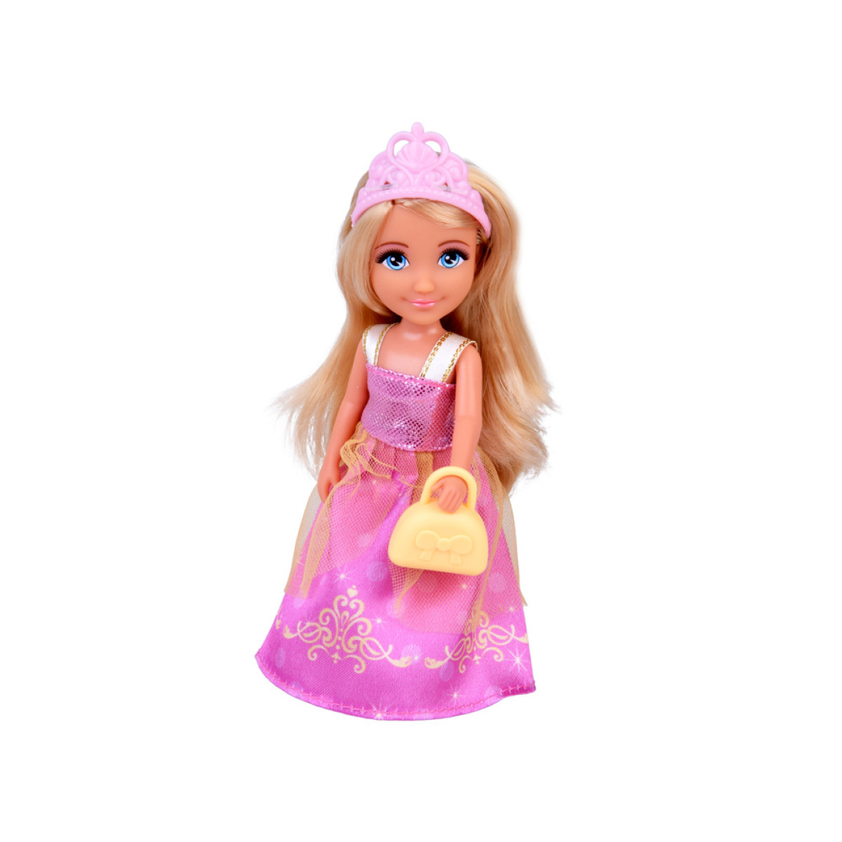 - Lėlė Ankiki Mini – aukštis apie 14 cm, graži princesė rožinėje suknelėje su karūna ir elegantiška rankine