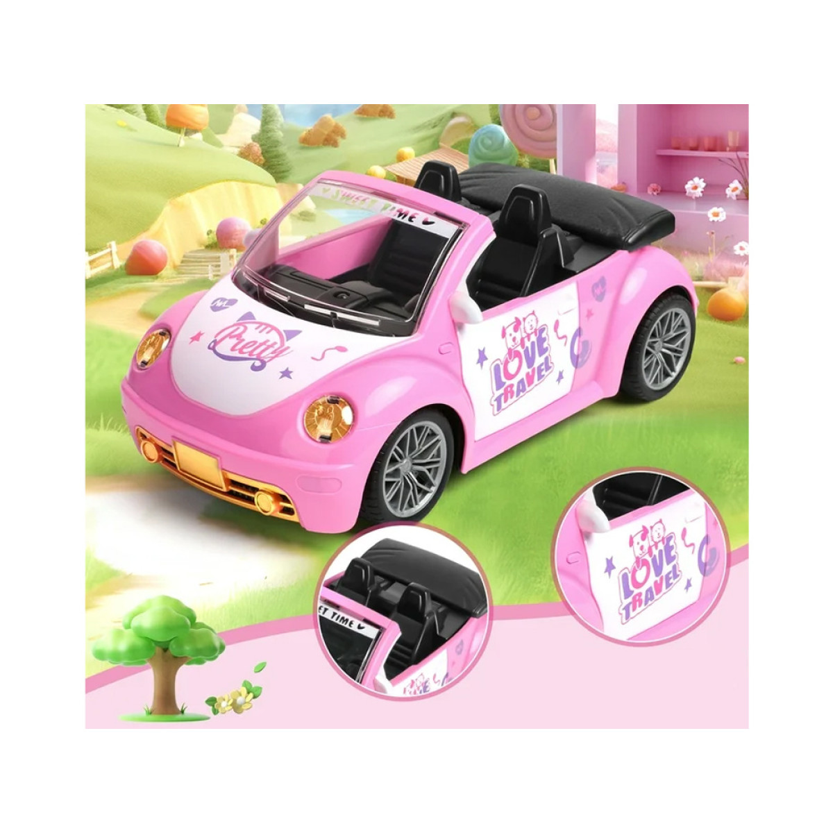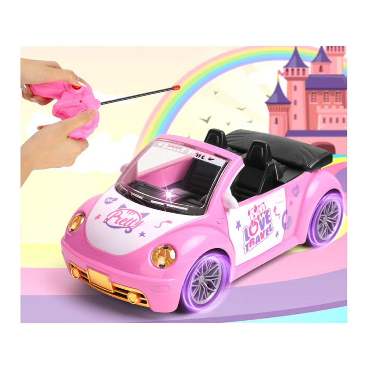 Kiekviena mažoji keliautoja svajoja apie savo automobilį – dabar tai įmanoma! Automobilis leis mergaitėms keliauti po visą namą. Jis valdomas paprastu pultu su dviem mygtukais, leidžiančiais važiuoti į priekį ir atgal bei sukti į kairę ir dešinę. Važiuojant į priekį, automobilis efektingai šviečia žibintais, suteikdamas žaidimui realizmo.