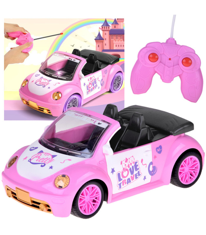 Rožinis cabrio automobilis RC - tai nuostabi dovana mergaitėms nuo 3 metų. Šis automobilis lengvai valdomas pultu, turi šviečiančius žibintus ir teikia daugybę džiaugsmo bei įspūdingų žaidimų. Puikus pasirinkimas mažajai princesei!