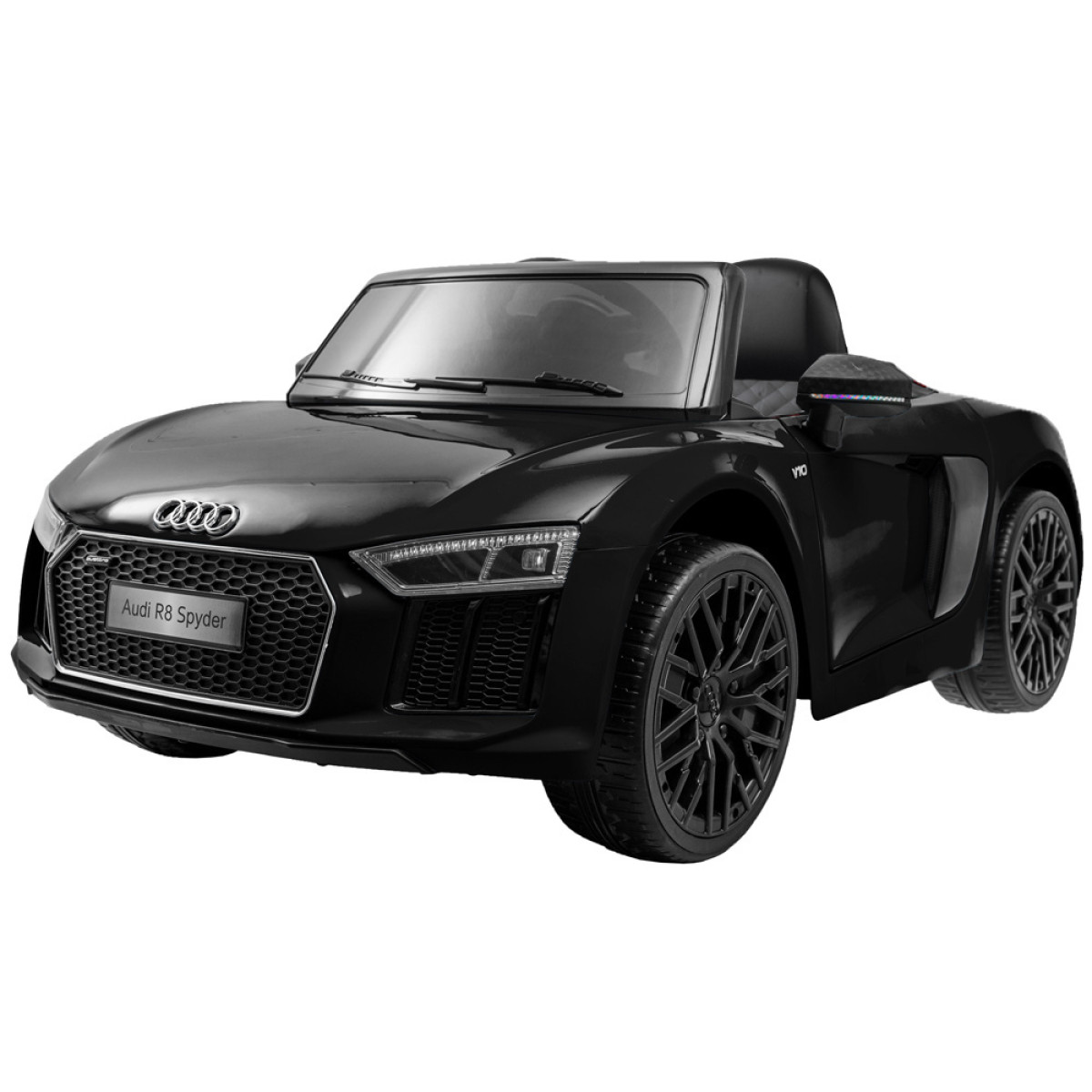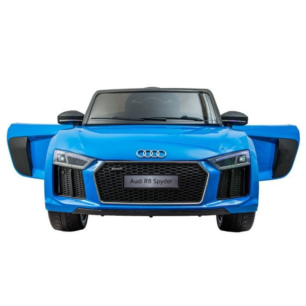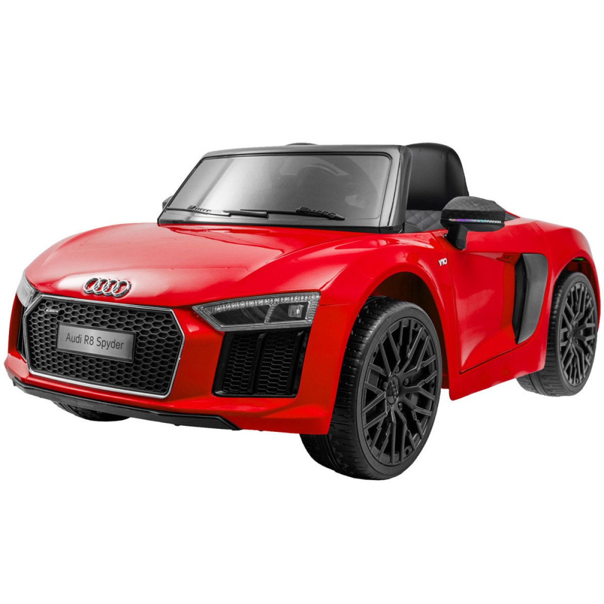 Minkšti EVA putplasčio ratai užtikrina komfortišką važiavimą vaikui. Atidaromos durys palengvina įlipimą ir išlipimą iš automobilio. Išskirtinis automobilis pagamintas iš aukščiausios kokybės medžiagų – pagal Audi licenciją. Automobilis turi nuotolinio valdymo pultą, su kuriuo galima kontroliuoti vaiko važiavimo kryptį ir saugumą. Naujausia licencijuoto R8 Spyder versija turi 2 galingus 12V 35W variklius, 2 x 6V 7Ah gelinius akumuliatorius ir 2,4GHz nuotolinio valdymo pultą tėvams.