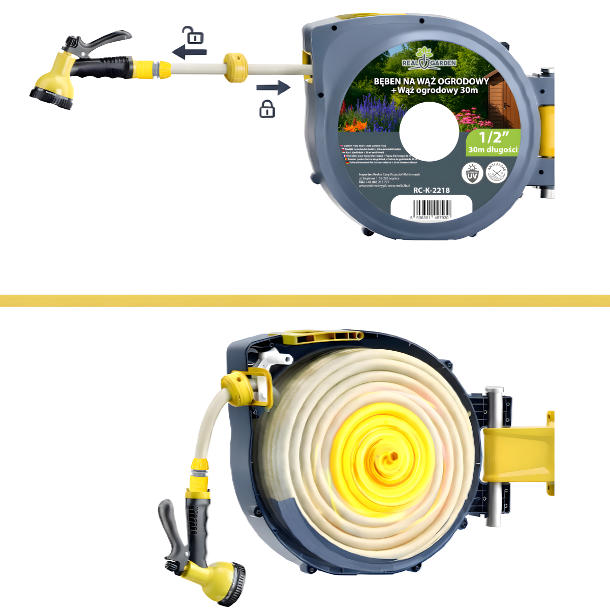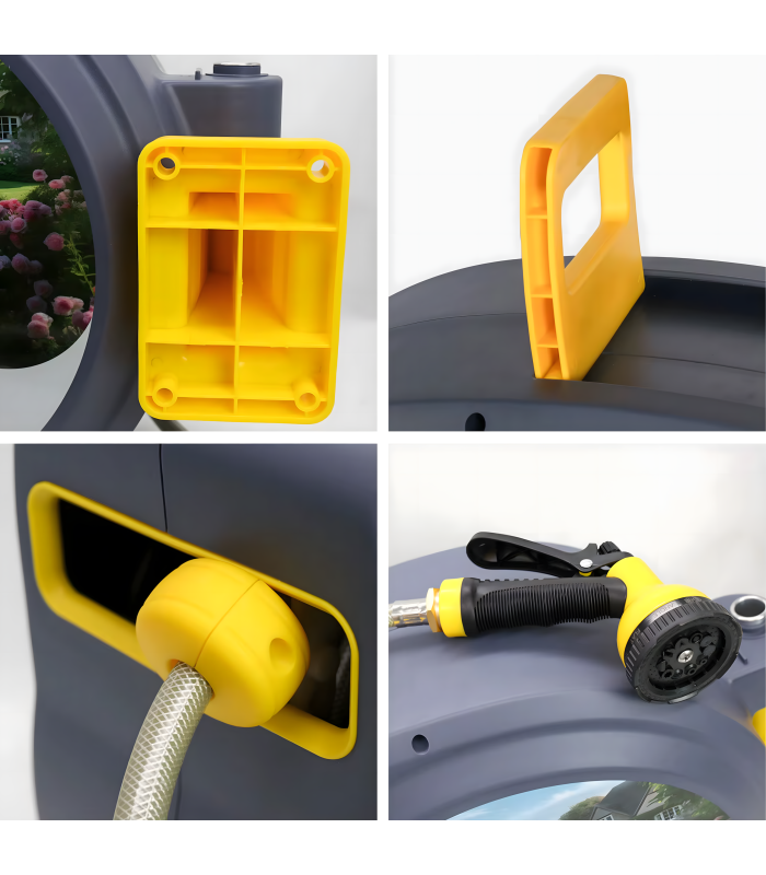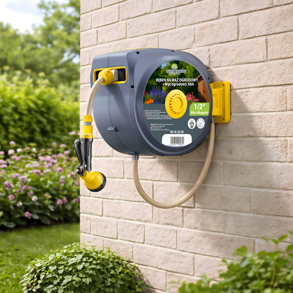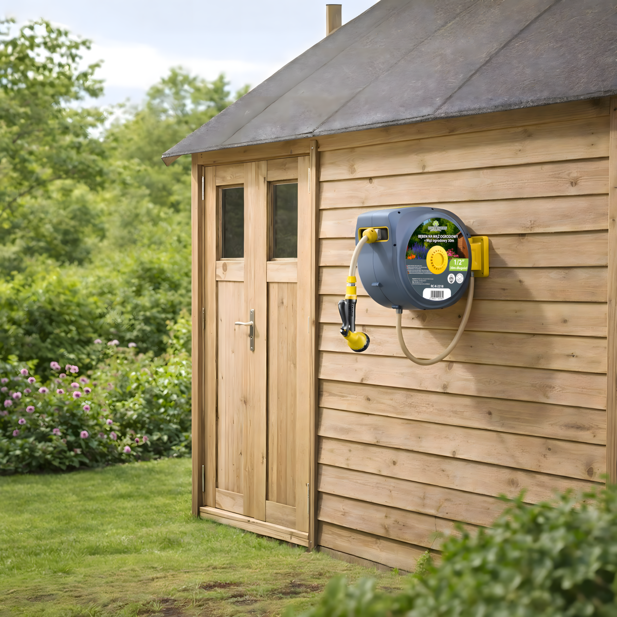 Aukštos kokybės automatinis sieninis sodo žarnos ritės susukėjas, kuris leidžia patogiai ir greitai susukti žarną. Šis rinkinys idealiai tinka jūsų sodo priežiūrai, užtikrinant tvarką ir efektyvumą.