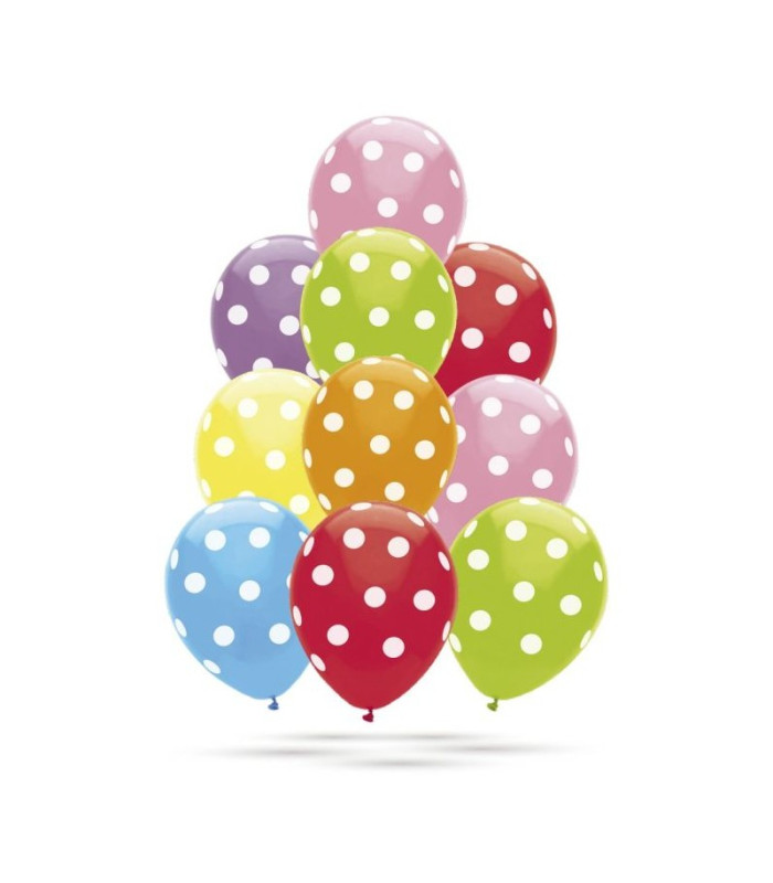 Balionas pagamintas iš natūralaus kaučiuko (latekso) su mielu taškuotu raštu. Puiki puošmena pavasario ir vasaros šventėms. 10 vnt. pakuotėje. Skersmuo 30 cm.