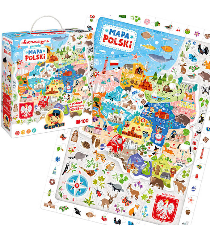 CzuCzu Stebėjimo dėlionė Lenkijos žemėlapis 100 dalių 5+ plakatas ZA5561