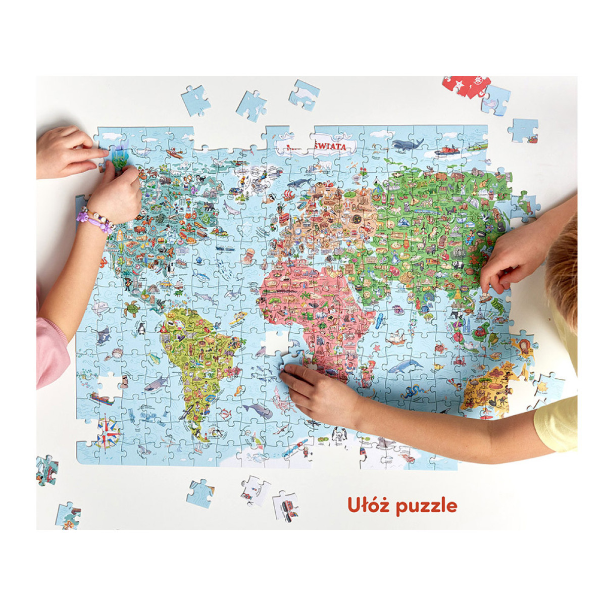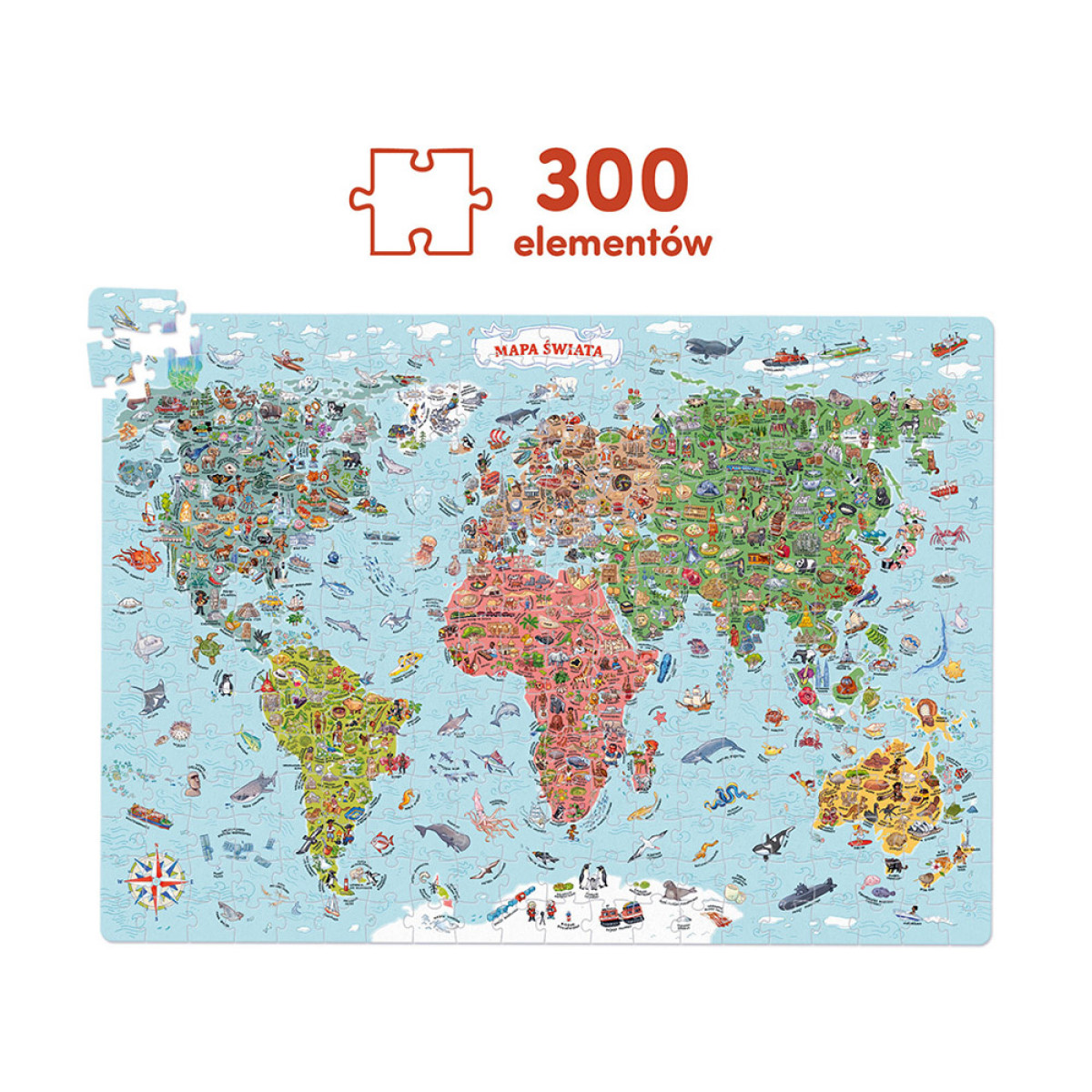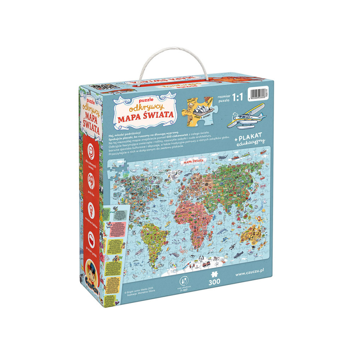 Šioje didžiulėje žemėlapyje rasite skirtingų žemynų ir vandenynų gyventojus, įspūdingus pastatus, unikalius papročius, vietinius skanėstus bei gausų floros ir faunos pasaulį iš tolimiausių Žemės kampelių. Čia rasite daugiau nei 600 įdomybių, kurios skatins jus tyrinėti pasaulį ir pažinti jo nepaprastumą.