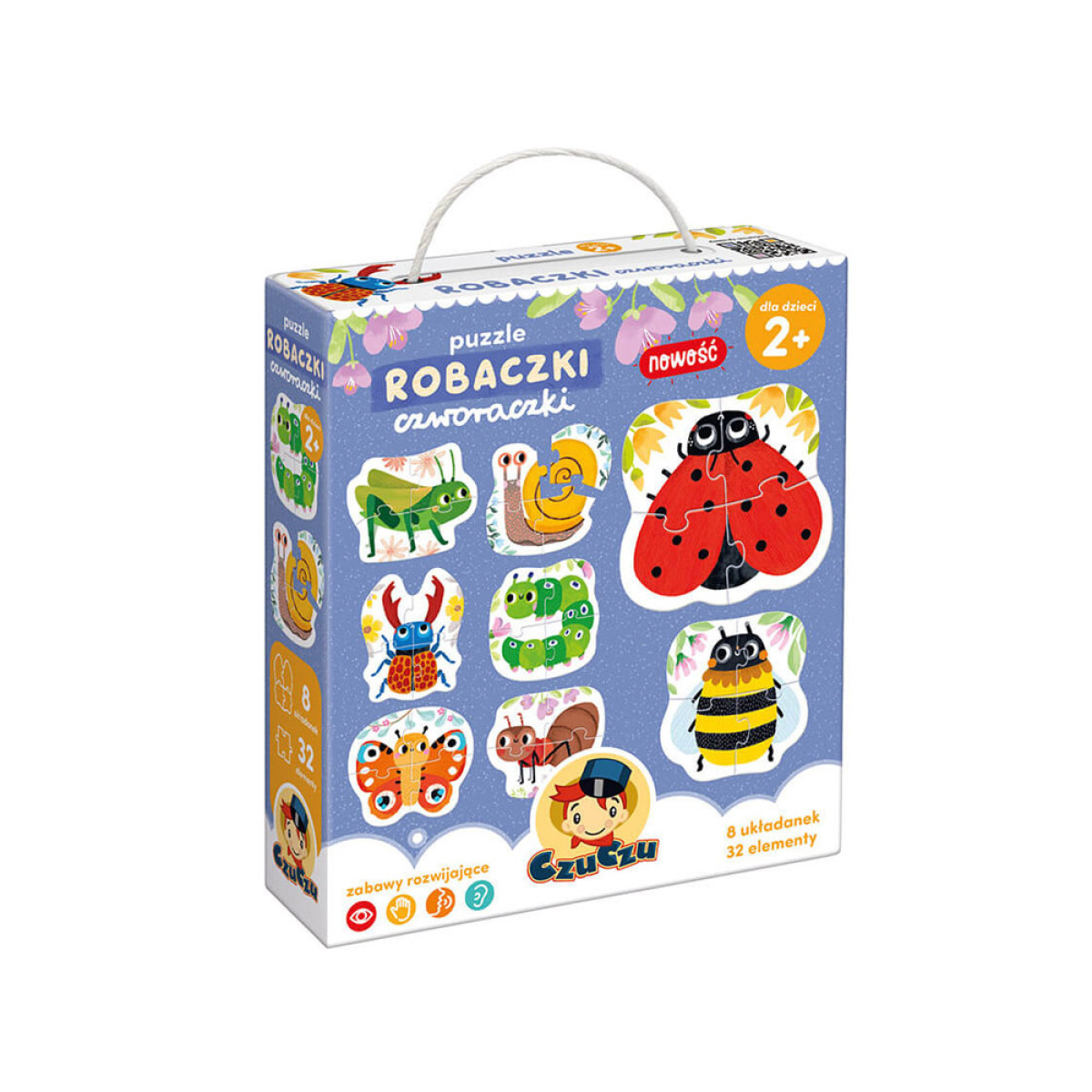 CzuCzu Dėlionė Vabalai Keturis yra pirmosios, paprastos keturių dalių dėlionės vaikams. Dėlionės su linksmais pievų gyventojais suteikia puikią pramogą, taip pat lavina rankų miklumą, atidumą ir koncentraciją.