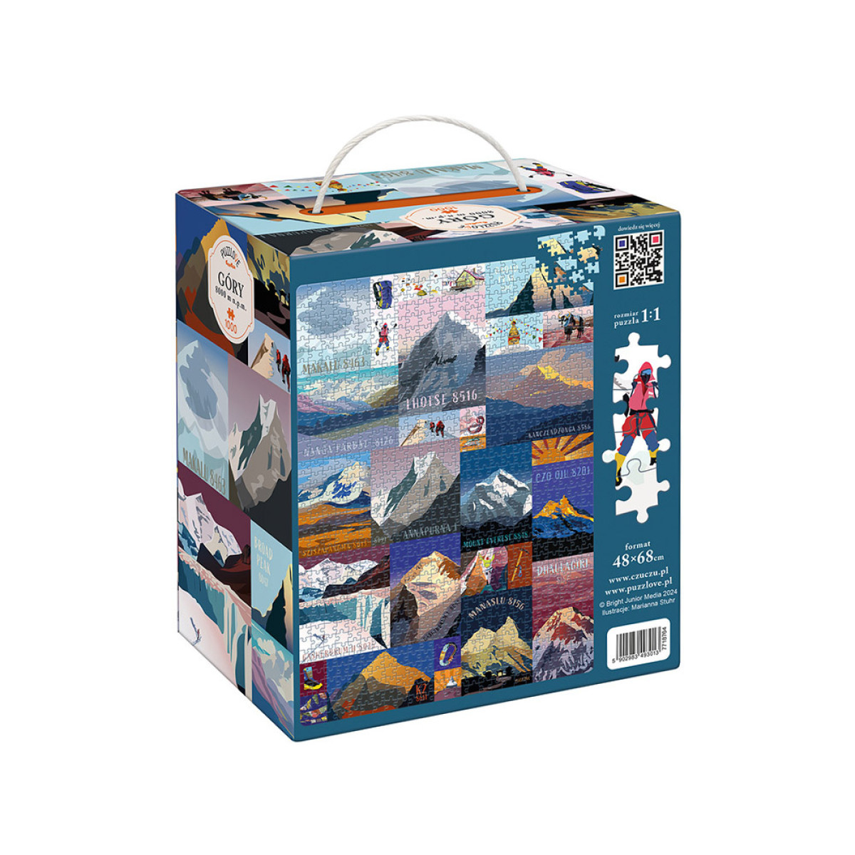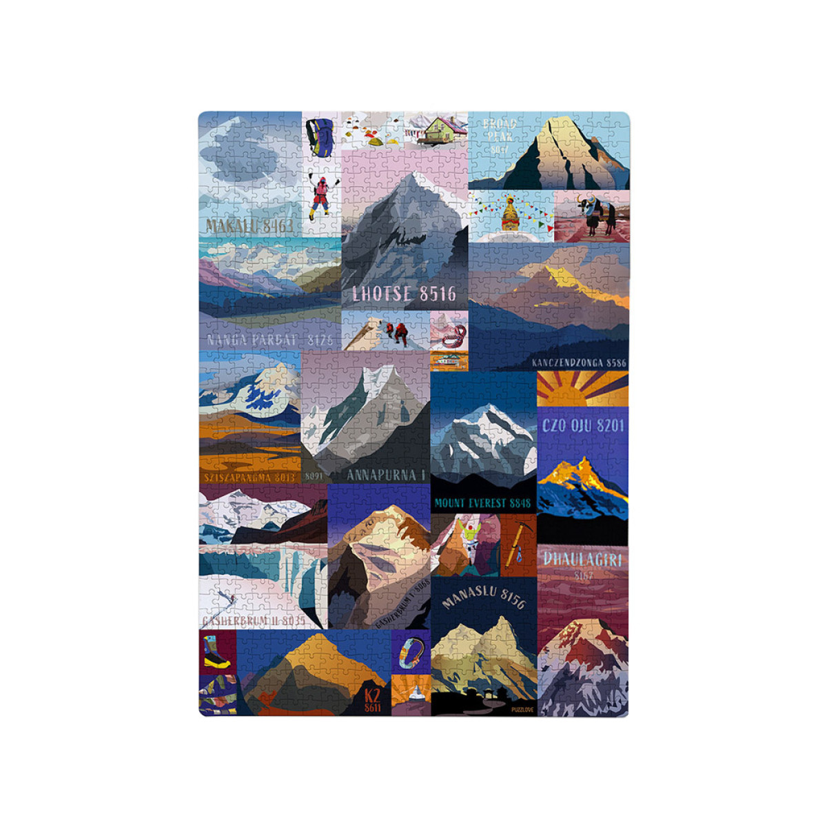 1000 detalių dėlionė, kurioje pavaizduoti net 14 kalnų viršūnių virš 8000 m v.j.l. Himalajuose ir Karakorume (bei visoje Žemėje). Piešiniai kruopščiai parinkti ir suderinti, kad puikiai derėtų tarpusavyje!
