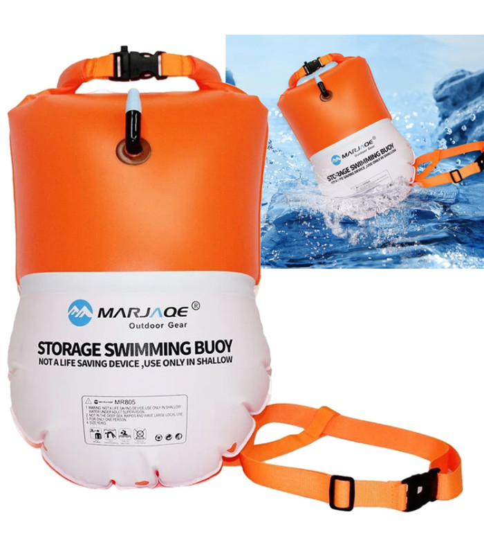 Užtikrinkite saugumą ir patogumą plaukimo metu! Pripučiama apsauga su sausos kuprinės funkcija yra nepakeičiamas elementas visiems, kurie mėgsta plaukti atviruose vandenyse – ežeruose, upėse ar jūroje. Ji ne tik suteikia papildomą plūdrumą ir matomumą vandenyje, bet ir apsaugo jūsų raktus, telefoną, dokumentus ar užkandžius nuo vandens.