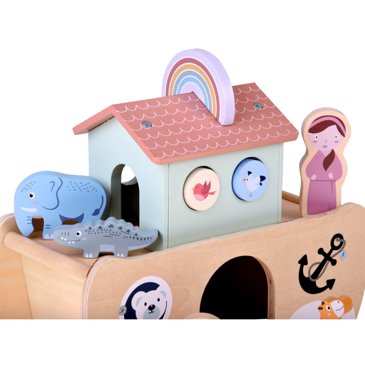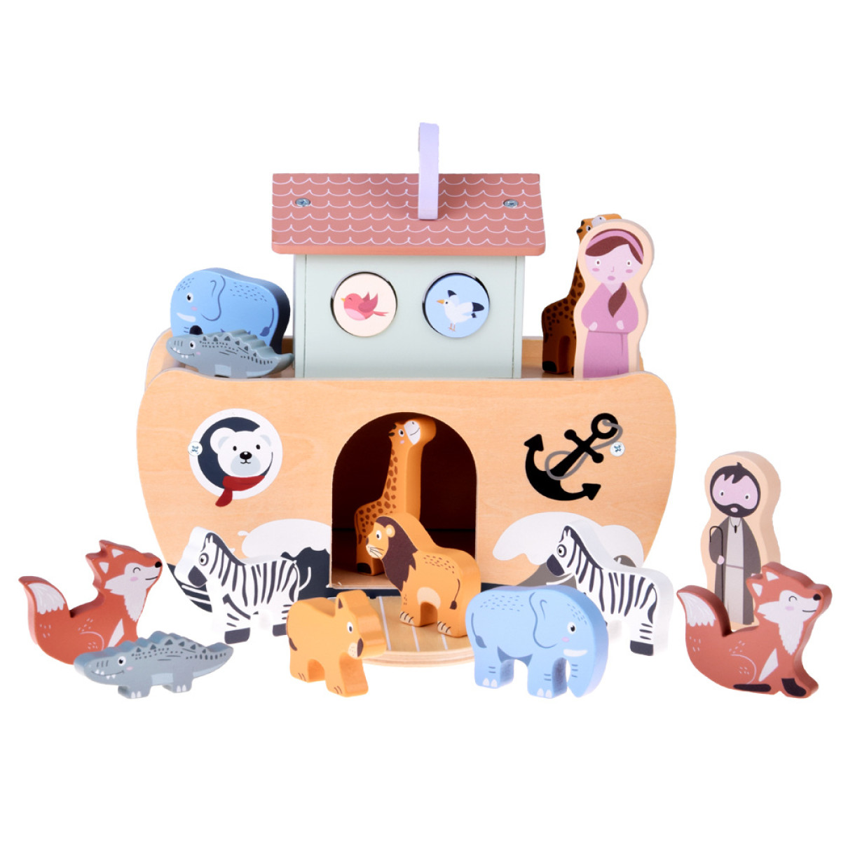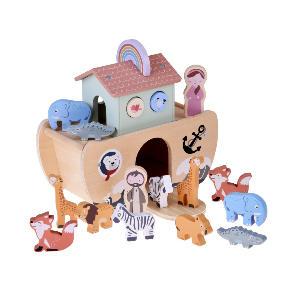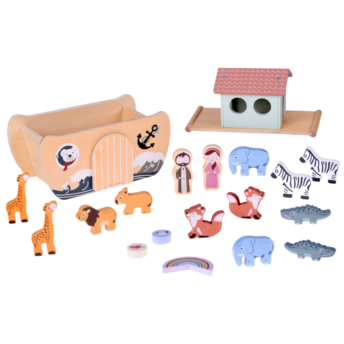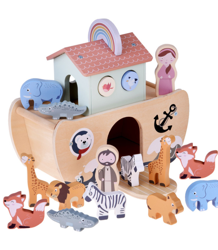 Medinė Nojaus arka yra klasikinis edukacinis žaislas, kuris sužavės kiekvieną vaiką ir skatins mokytis per žaidimą. Rinkinyje rasite tvirtai pagamintą arką ir medines gyvūnų bei personažų figūrėles, kurios leis vaikui atkurti biblinę istoriją arba kurti savo nuotykius.