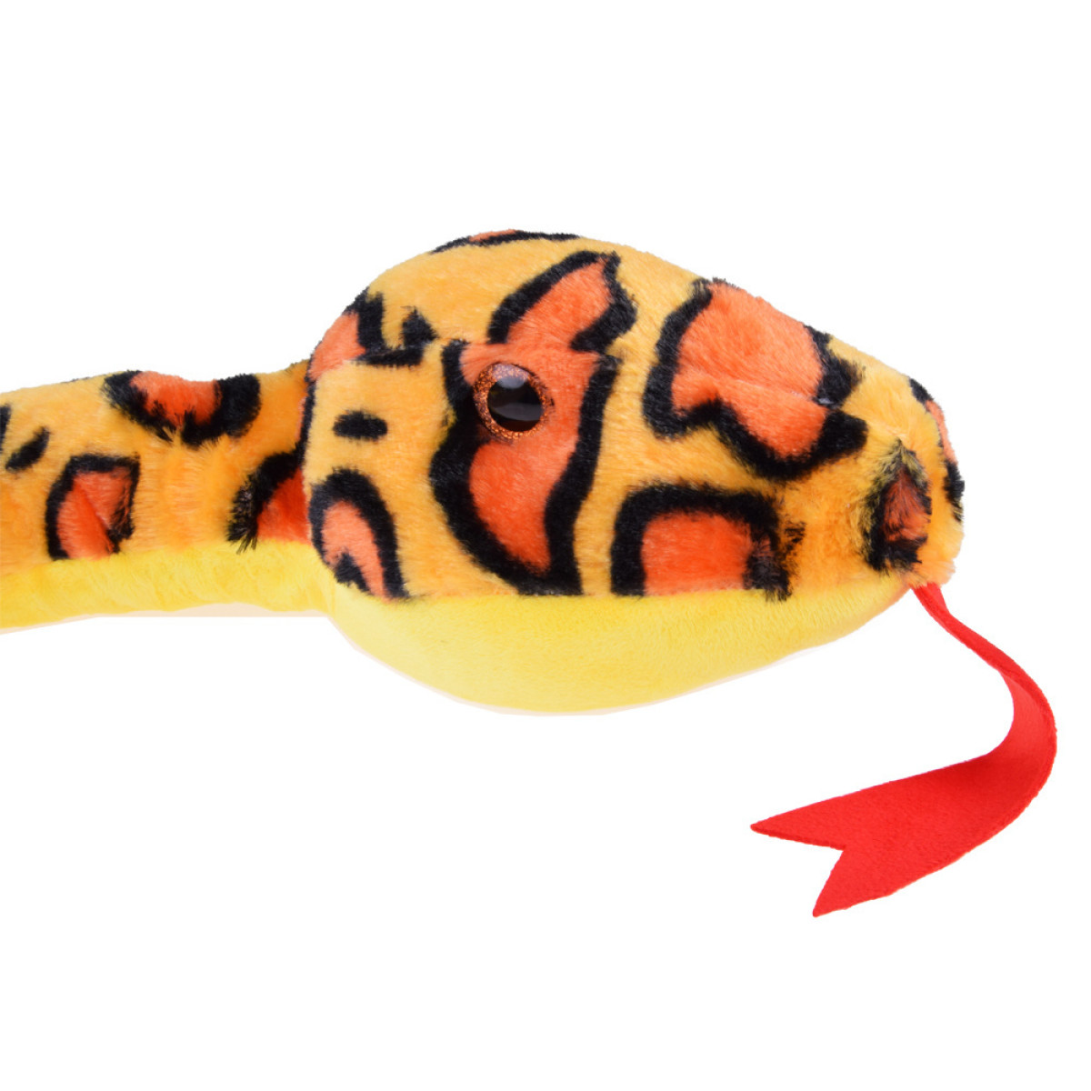 Šis mielas gyvūnas mėgsta susivynioti, žaisti ir būti priglaustas. Jis tikrai patrauks kiekvieno vaiko dėmesį ir taps nepakeičiamu žaidimų draugu. Žaislas yra 160 cm dydžio, geltonai oranžinės spalvos. Švelnus užpildas ir minkštas pliušas užtikrins, kad gyvatė bus puikus pasirinkimas tiek priglausti, tiek kartu pailsėti ir užmigti. Gyvatę galima lengvai pasiimti beveik visur.
