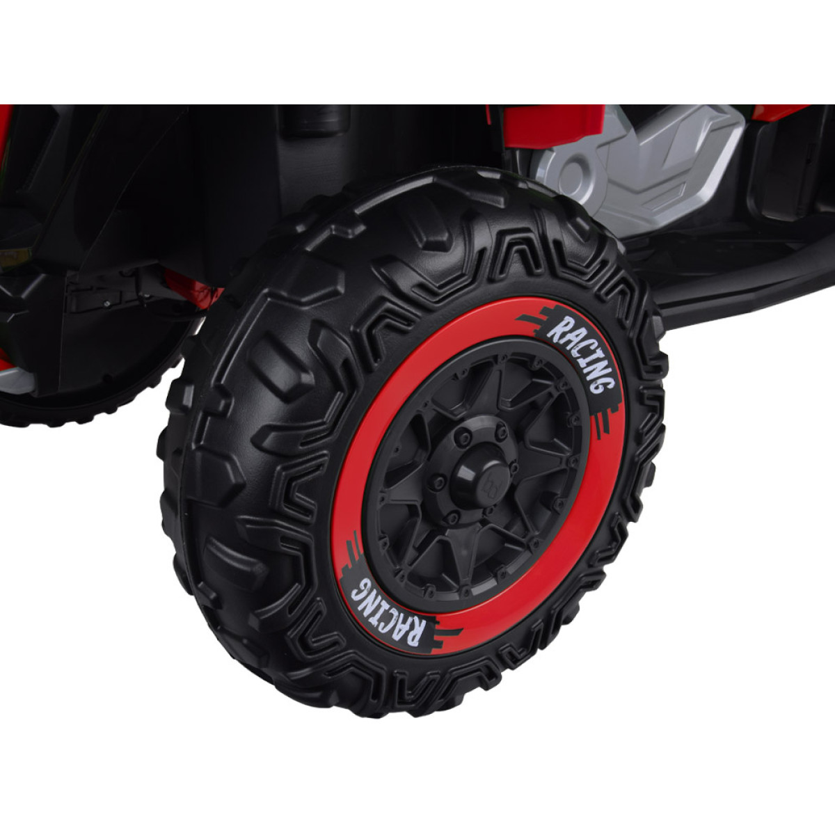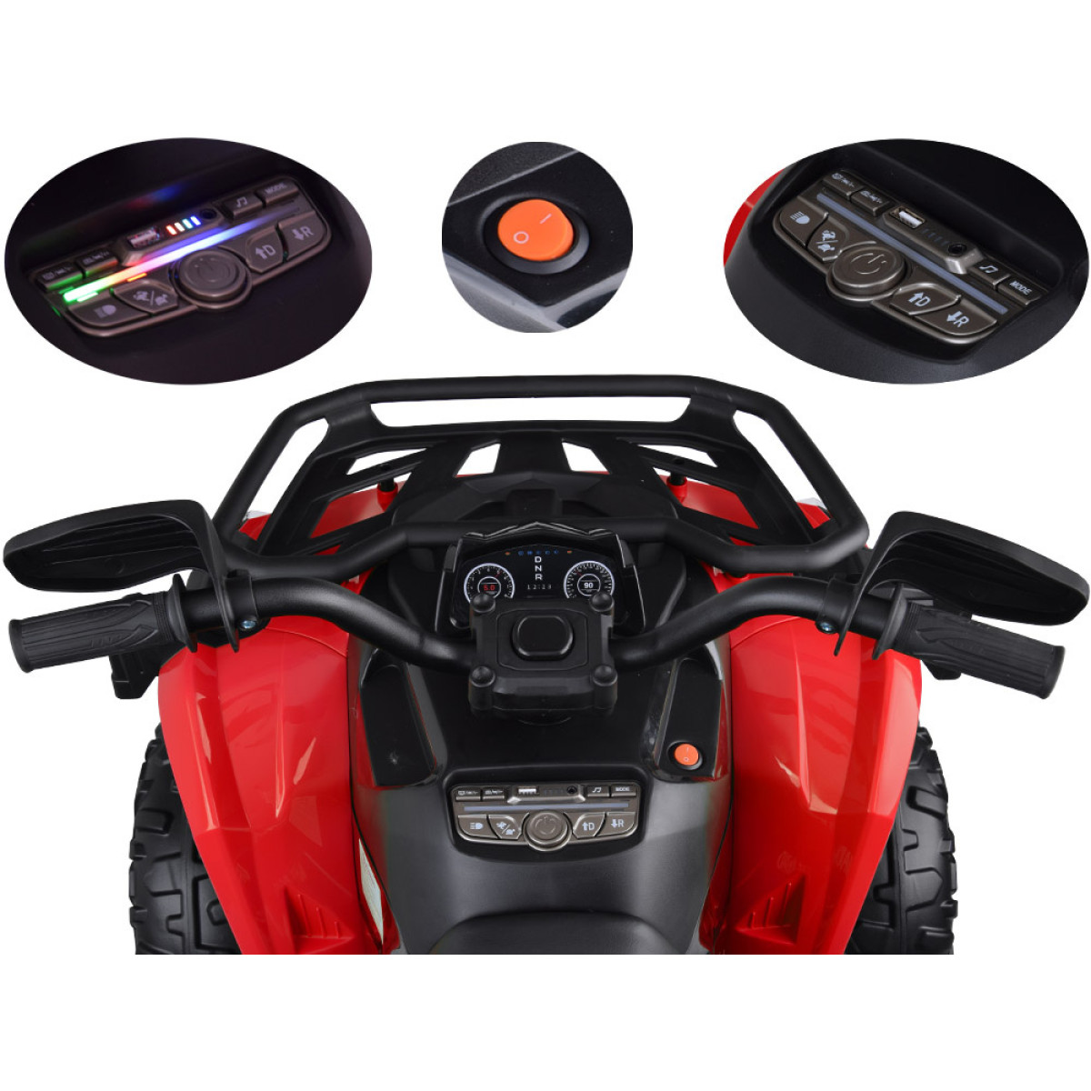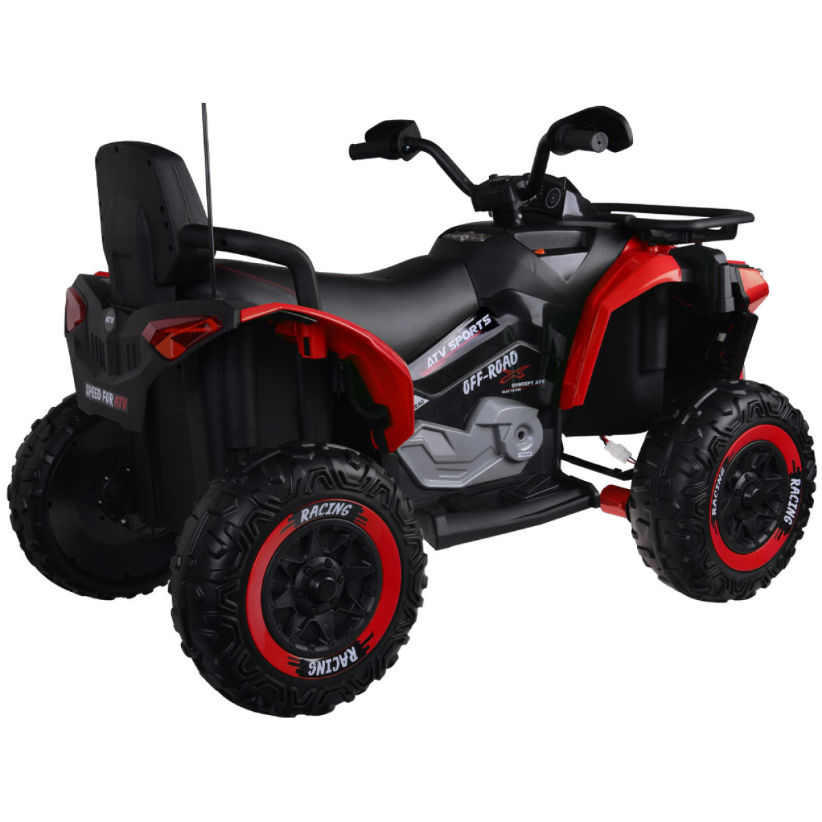 Šiame modelyje sumontuoti 4 varikliai 12v 1000rpm ir 12v 10ah akumuliatorius, todėl keturratis užtikrina gerą trauką, stabilų važiavimą ir daug džiaugsmo vaikui.