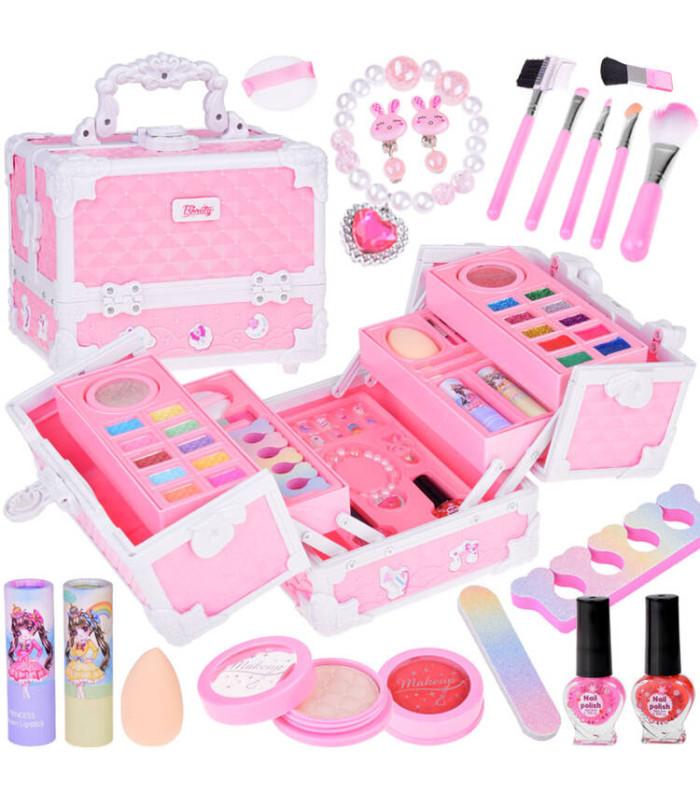 Kosmetikos rinkinys leis atlikti makiažą ypatingoms progoms, kad jaustumeisi ypatingai. Viskas supakuota į spalvingą, estetišką dėžutę, puikią dovanai. Parduotuvė Jokomisiada siūlo platų pasirinkimą vaikų makiažo rinkinių, nulupamų lakų ir plaukų puošybos aksesuarų. Būtinai patikrink!