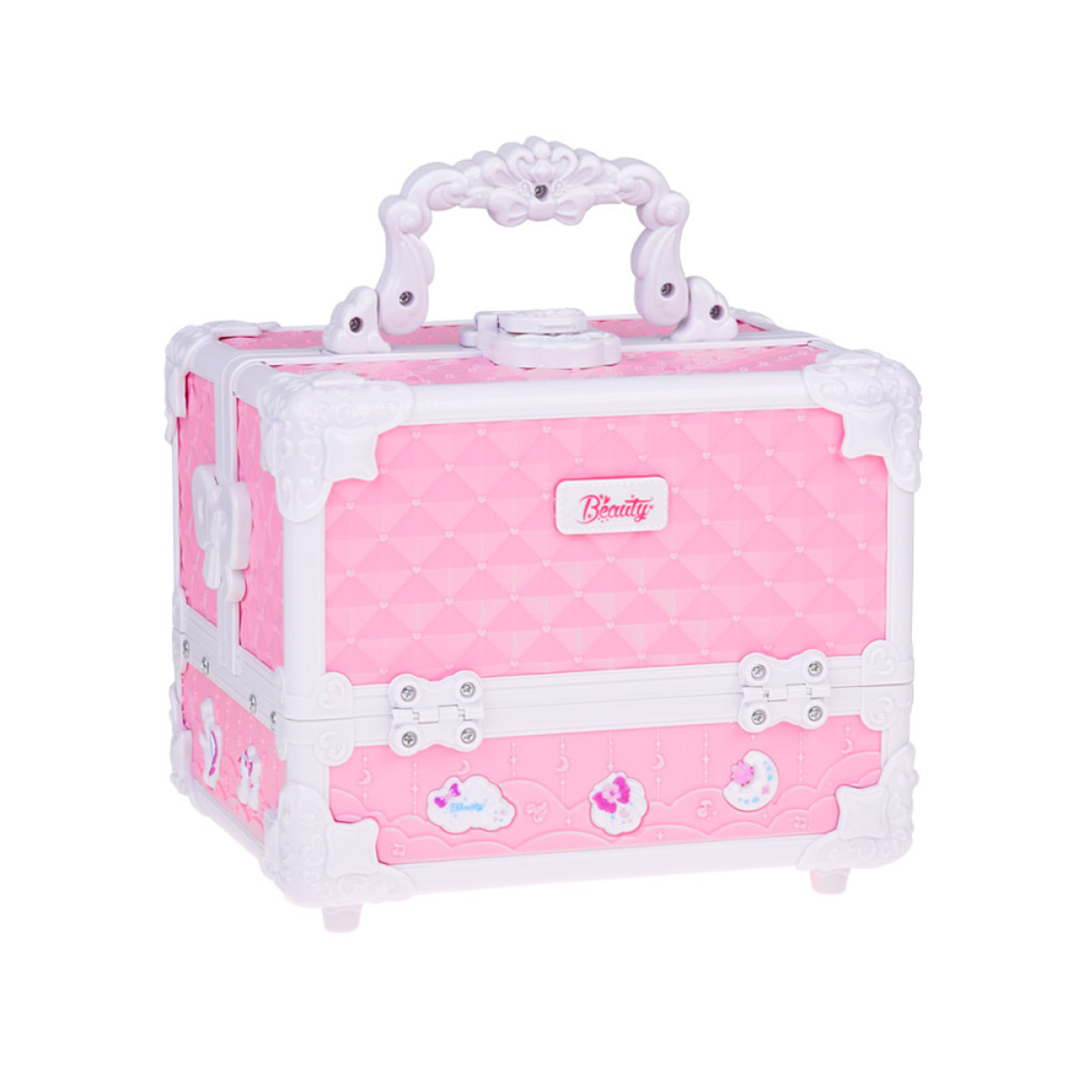 - Stilingas lagaminėlis - rožinės spalvos su baltais papuošimais, puikiai atrodys kiekvieno vaiko kambaryje ar ant tualetinio staliuko. Lagaminėlis pagamintas iš tvirto plastiko, turi patogią rankeną ir saugų užsegimą.