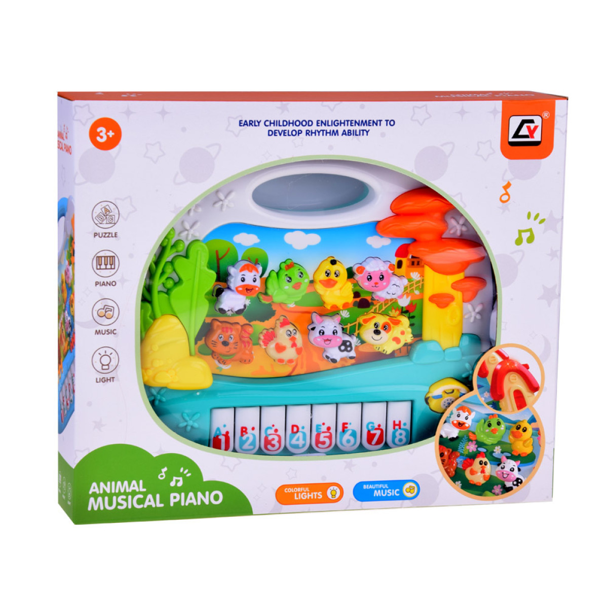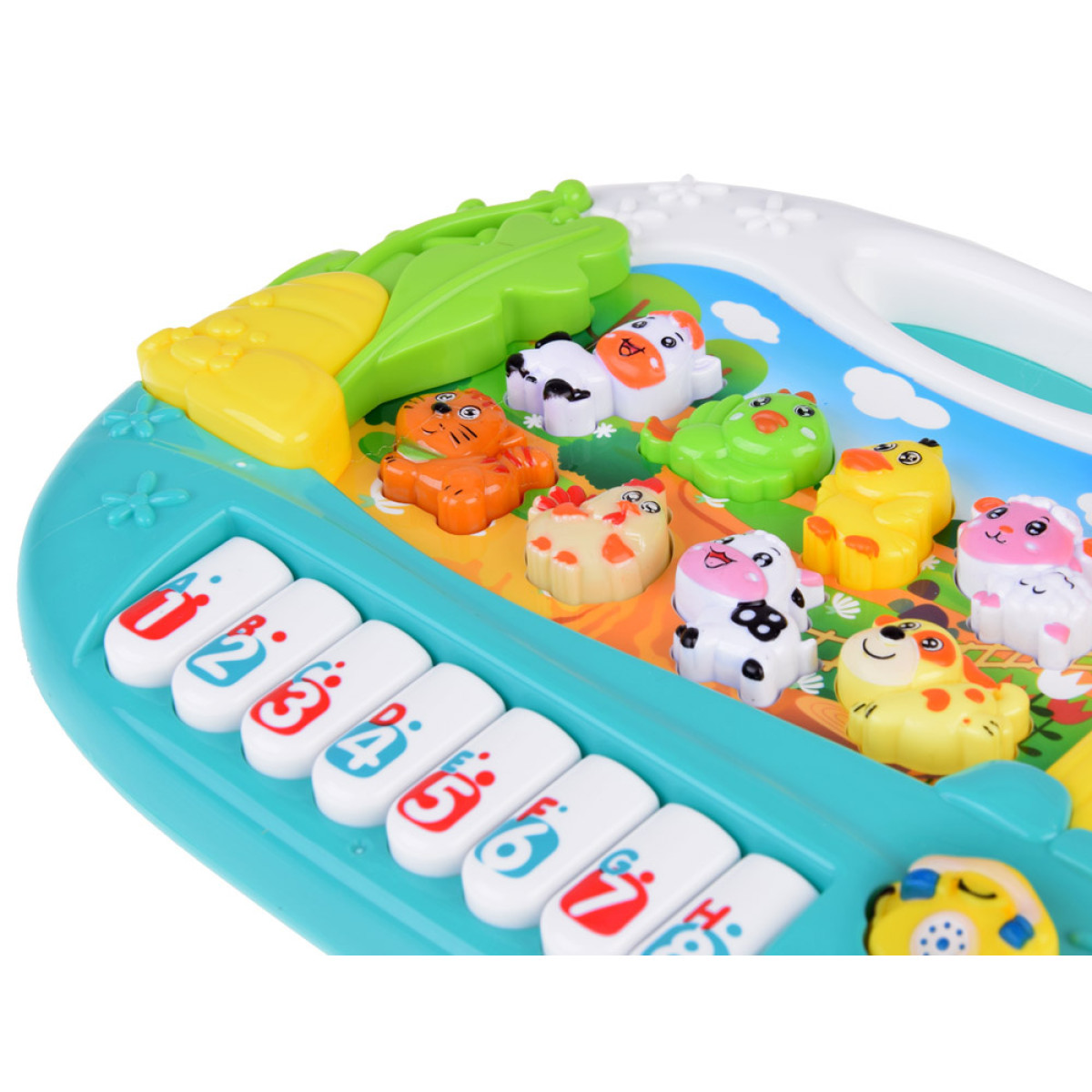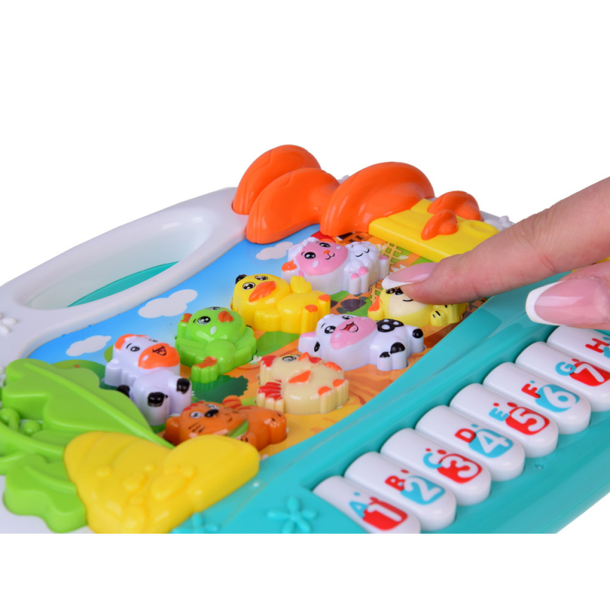 - Įrengtas 8 klavišais su skaičiais ir raidėmis bei 8 mygtukais su gyvūnėliais ir telefonu, užtikrina vaikui valandų edukacinio žaidimo, skatindamas jo vystymąsi.