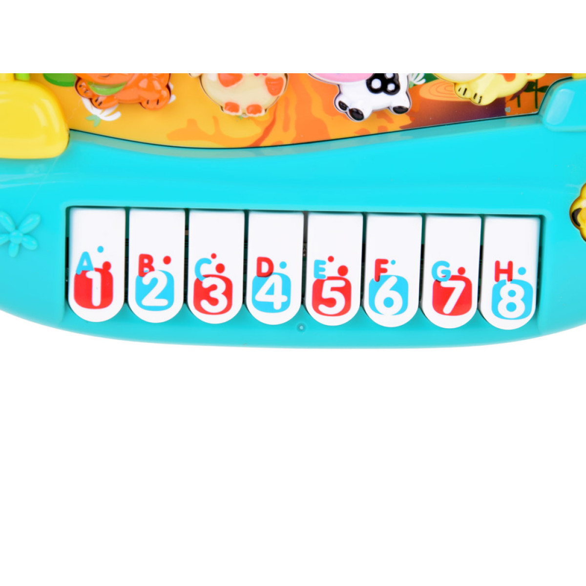 - Gyvūnų garsai – paspaudus vieną iš mygtukų, pianinas atkuria konkretaus gyvūno garsą ir melodiją su juo.