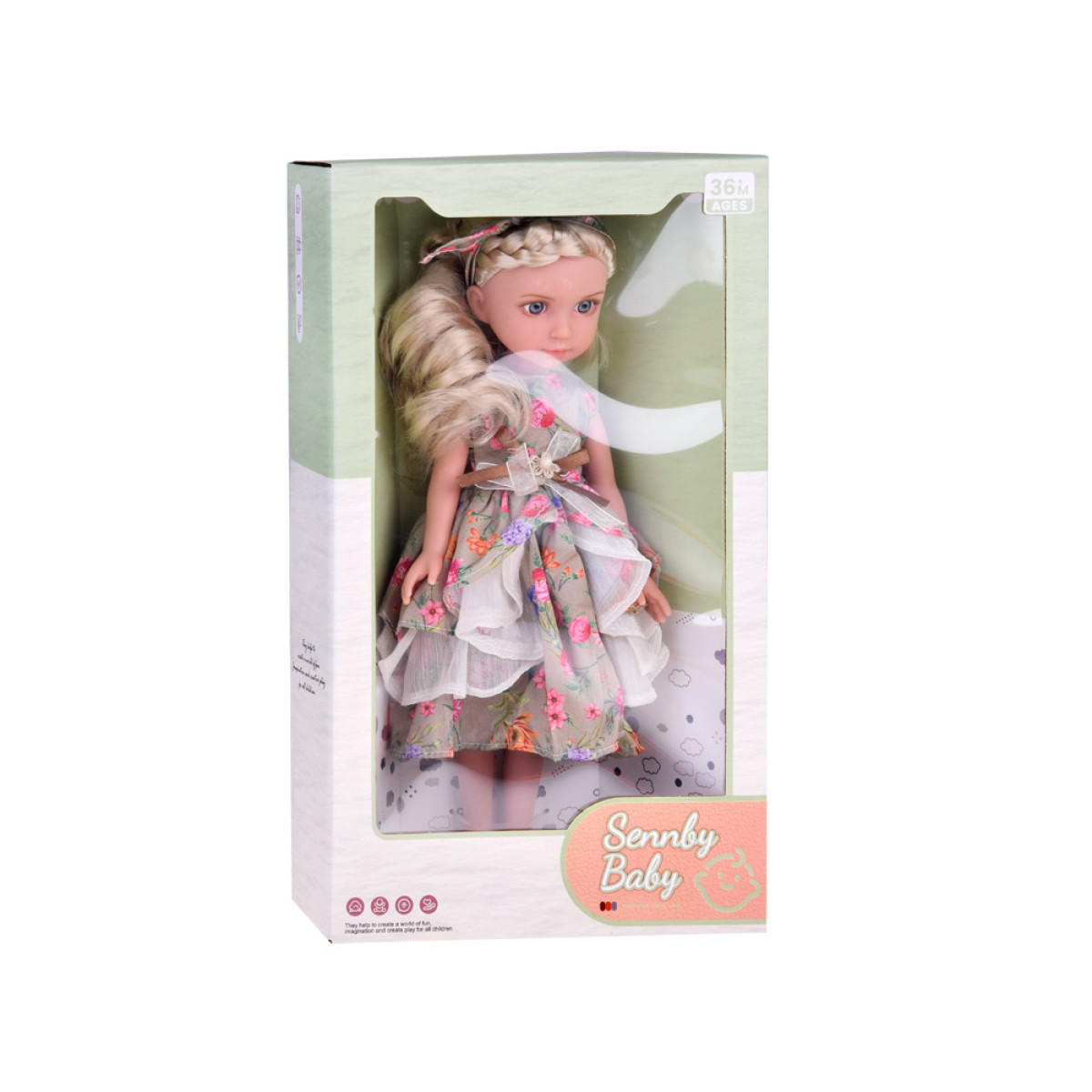 Ši lėlė yra tikra dama, ideali žaismingoms pramogoms. Ilgi, šviesūs plaukai susukti į elegantišką kasą, o ji apsirengusi puošnia kokteiline suknele su gėlių motyvais ir raukiniais. Stilingą visumą papildo gėlėta galvos juosta ir balti bateliai. Visa išvaizda tiesiog žavi!