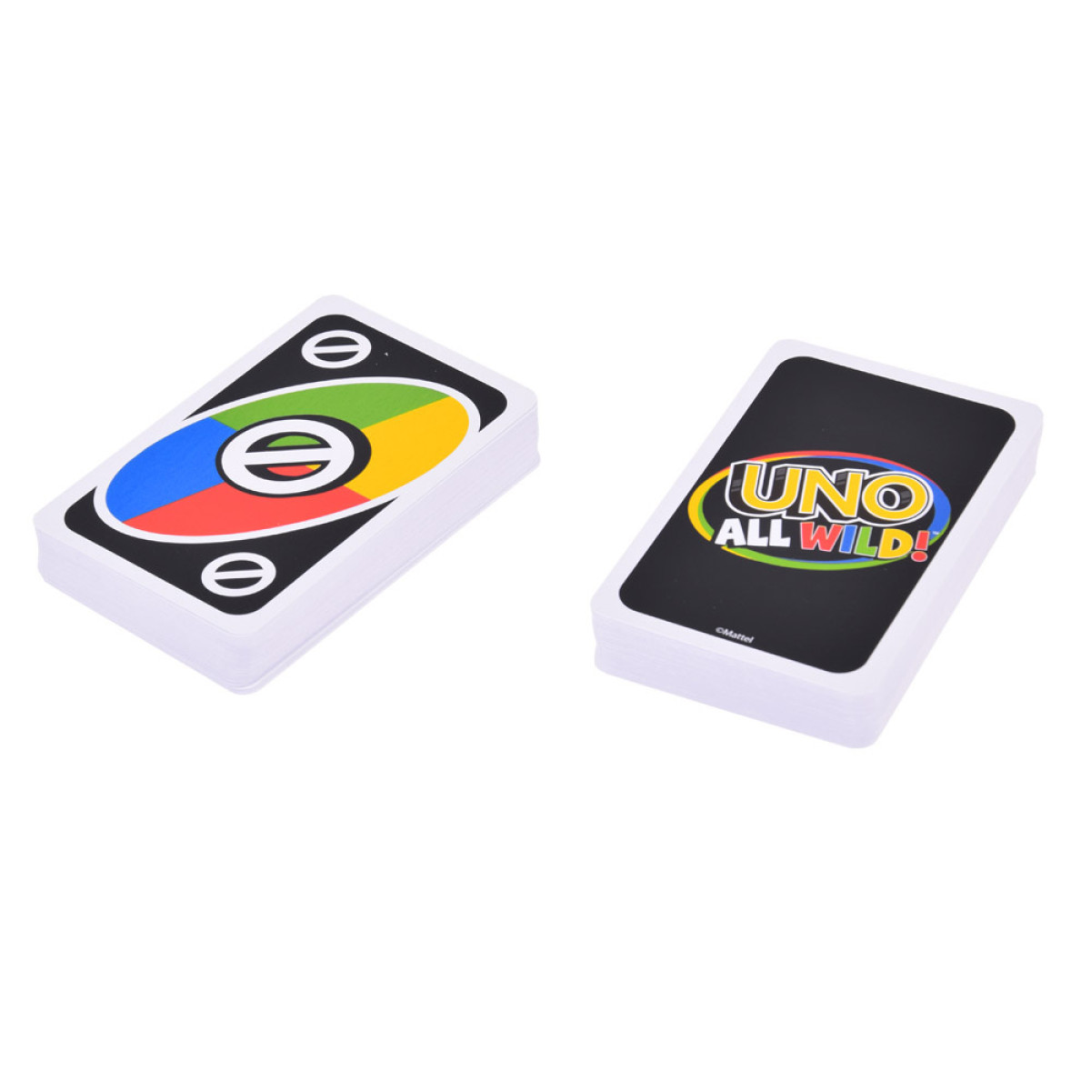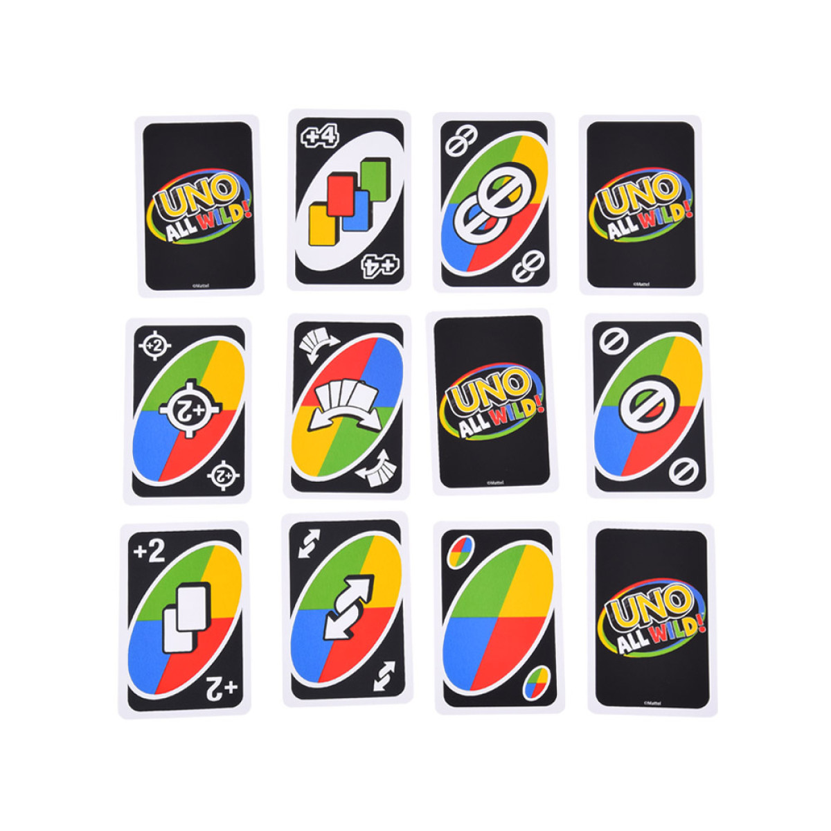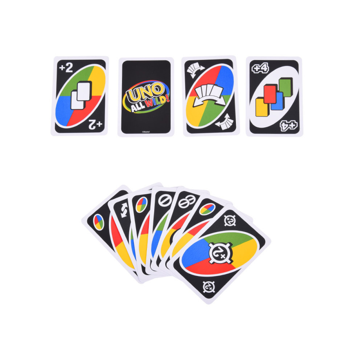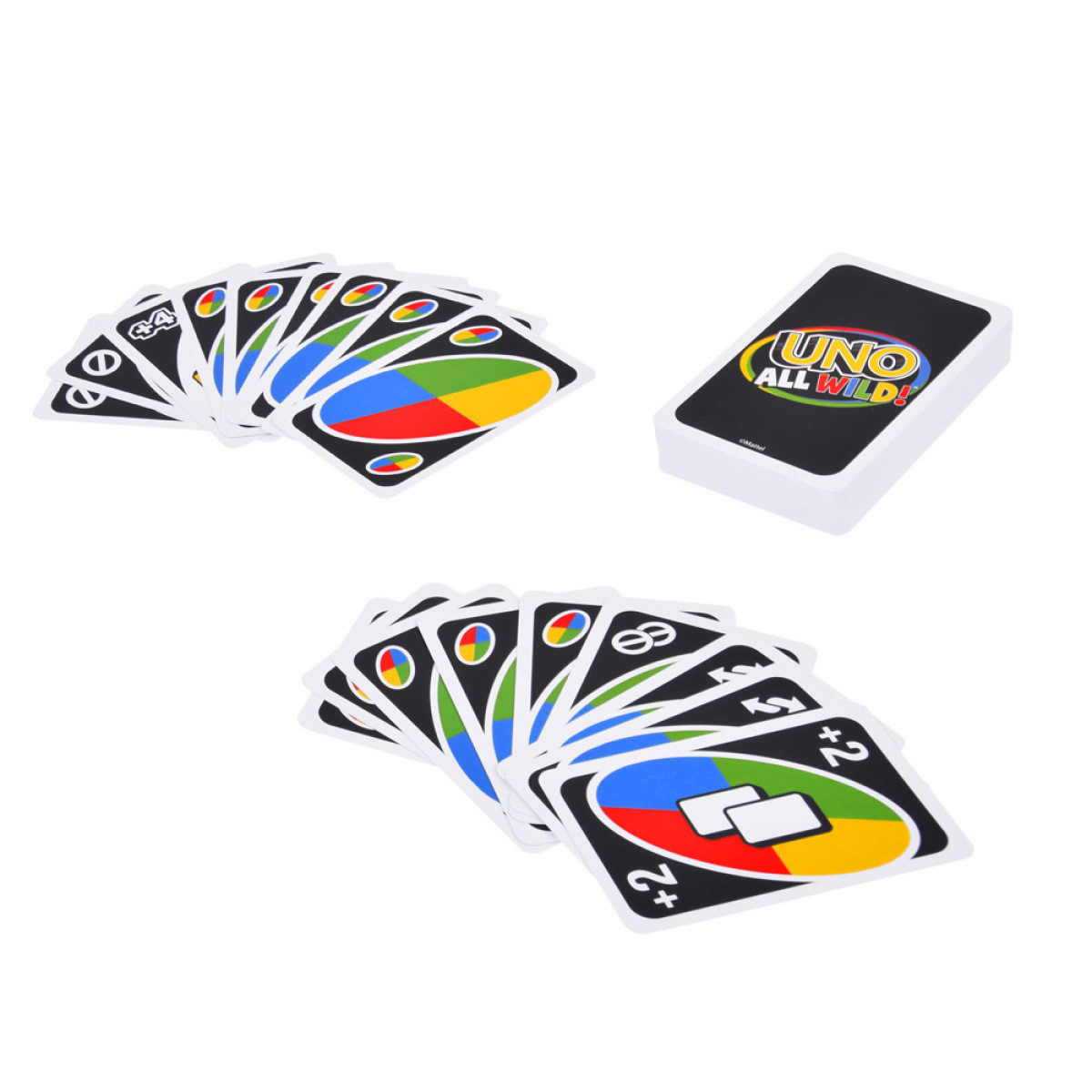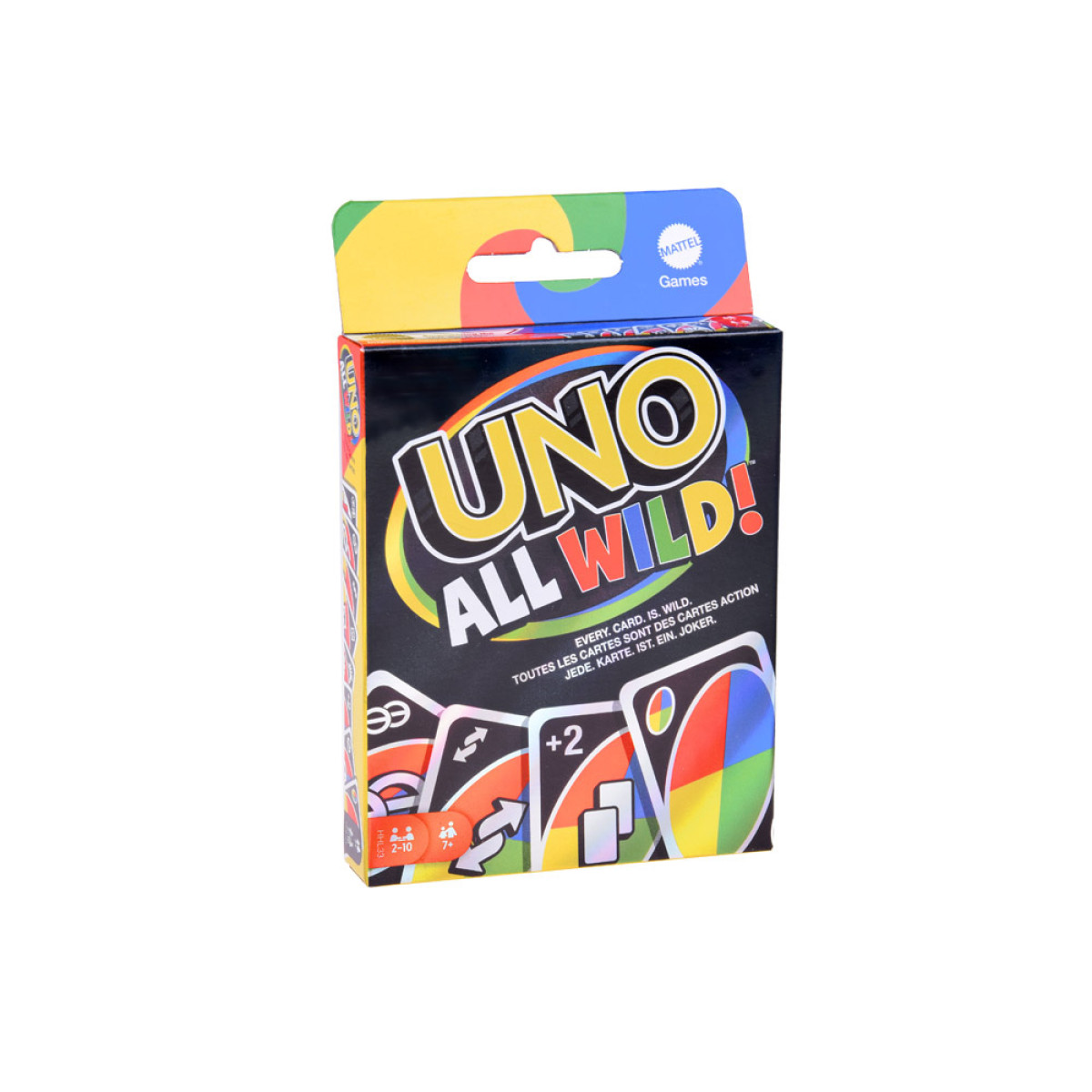 UNO ALL WILD! yra nauja visų pamėgto žaidimo kortų versija. Kviečiame susipažinti su nauju, laukiniu UNO žaidimo būdu. Klasikinėje versijoje reikia derinti skaičius arba spalvas, tačiau šioje versijoje to daryti nereikia. UNO ALL WILD! žaidime kiekviena korta yra laukinė, todėl žaidimas tampa greitas ir nenuspėjamas. Taisyklės gali atrodyti lengvos, tačiau jos iš tiesų prideda žaidimo sudėtingumo. Kaladėje yra specialios kortos, kurios gali visiškai pakeisti žaidimo eigą. Korta „Stop dviem“ sustabdo žaidimą dviem žaidėjams vienu metu, o kita korta „Priverstinė keitimo“ leidžia žaidėjams pakeisti žaidimo išdėstymą. Šios ir kitos kortos įneša į žaidimą daug chaoso. Ši versija yra tokia pat įtraukianti ir emocinga, puikiai tinka šeimos, draugų ar vakarėlių pramogoms.