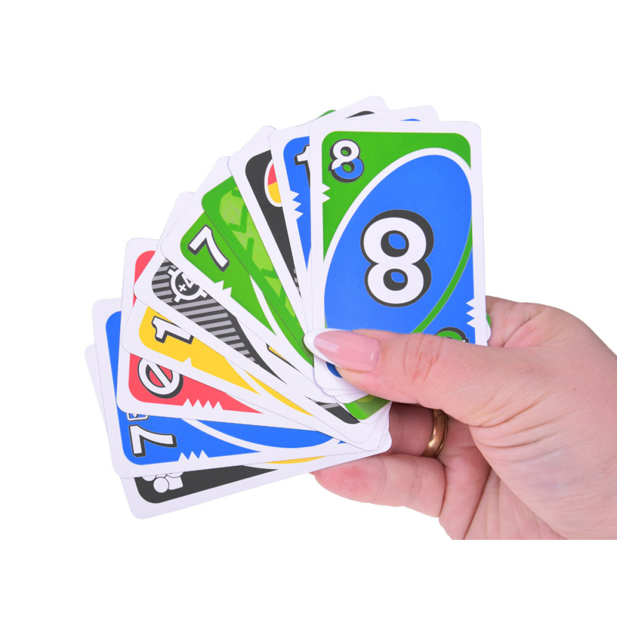 UNO Flex – tai nauja visų pamėgto kortų žaidimo versija. Žaidime rasite papildomų „Veiksmo“ ir „Pakeitimo“ kortų, kurios leidžia keisti spalvą ir kai kurias žaidimo taisykles, suteikdamos žaidimui daugiau netikėtumų ir įdomumo. Specialios kortos leidžia žaidėjams keisti spalvą, pavyzdžiui, žalios 2 kortos greitai gali tapti raudonomis 2 kortomis. „Pakeitimo“ kortos leidžia žaidėjams keisti kortų spalvą arba specialių kortų taisykles. „Veiksmo“ korta leidžia žaidėjui keisti, jei turi žalią paukštelį; jei yra raudonas X, žaidėjas turi palaukti. Standartinė „Paimk dvi“ korta veikia įprastai, bet jos „Pakeitimo“ versija priverčia visus kitus žaidėjus paimti 1 kortą! „Paimk keturias“ pakeitimo korta leidžia nuspręsti, kuris žaidėjas turi paimti 4 kortas. Laukinė „Visi paima kortas“ pakeitimo korta priverčia visus kitus žaidėjus paimti 2 kortas, o „Pakeitimo“ korta „Praleisti“ leidžia praleisti visus žaidėjus.
