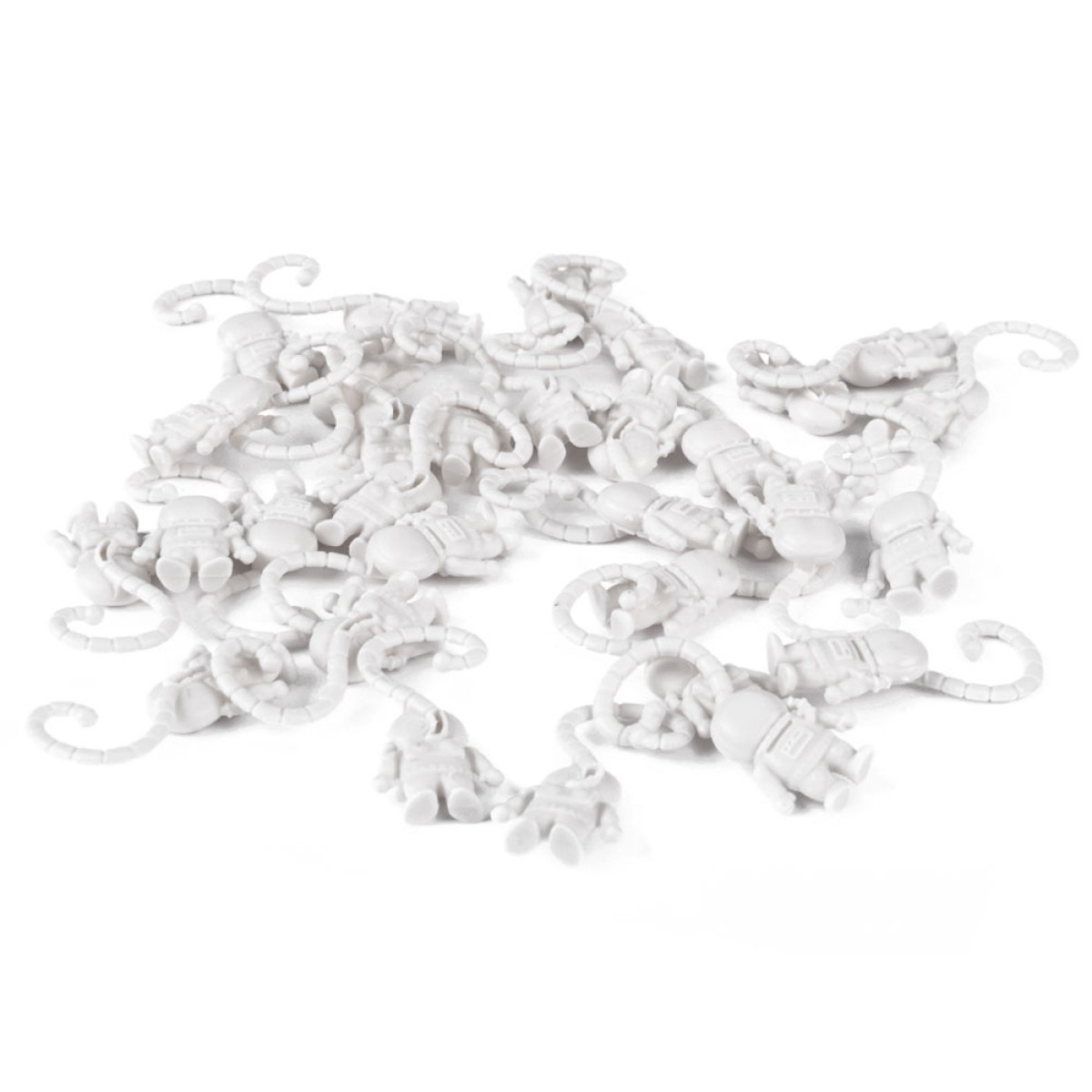 - astronautas: 4 cm x 1,5 cm x 0,5 cm