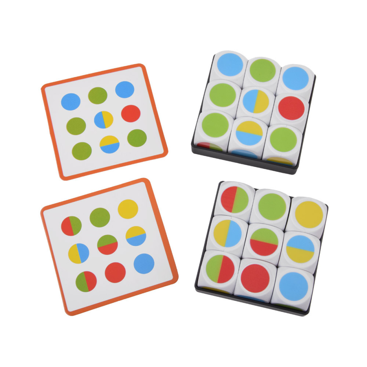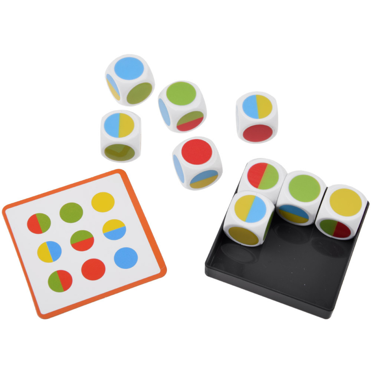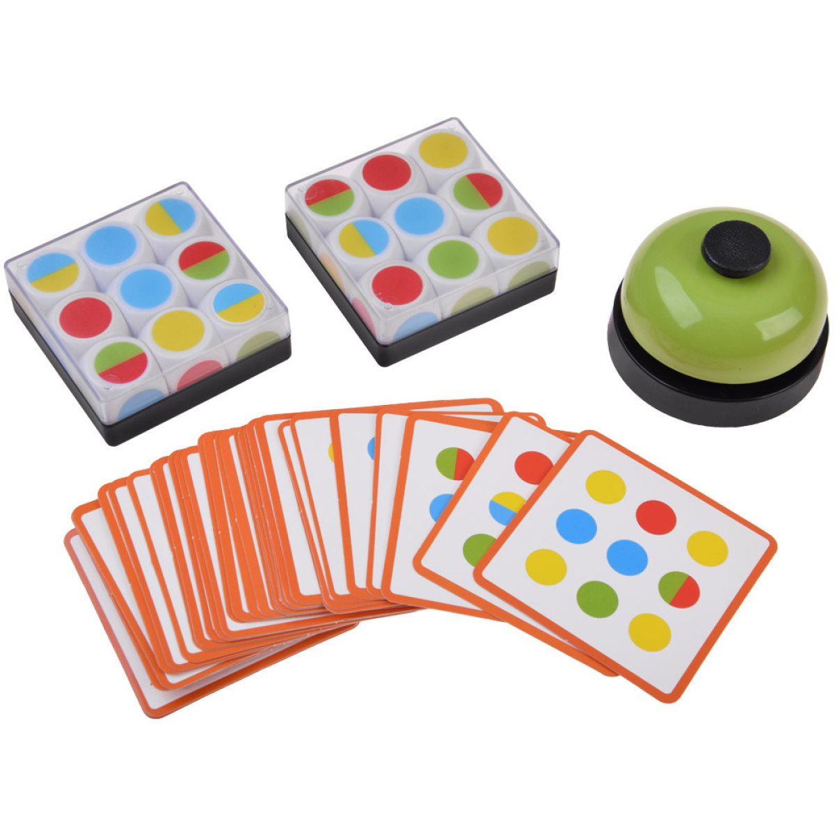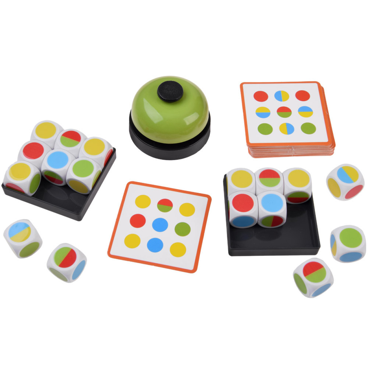 Kortas sumaišome ir dedame į krūvelę taip, kad raštai būtų uždengti. Tada žaidėjai pasidalina kauliukais ir deda juos šalia savo pagrindų. Atverčiama korta su raštu - prasideda tikrasis žaidimas! Žaidėjai kuo greičiau dėlioja raštus ant savo pagrindų. Kai tik sudedi raštą, greitai paspausk varpelį, kad neaplenktų priešininkas. Raštas atitinka? Puiku, gauni kortą. Jei kauliukai nesutampa, nesijaudink, kitą kartą seksis geriau. Kortą grąžiname į krūvelę. Laimi tas, kuris surenka daugiau kortų.