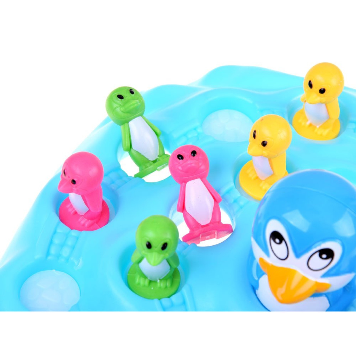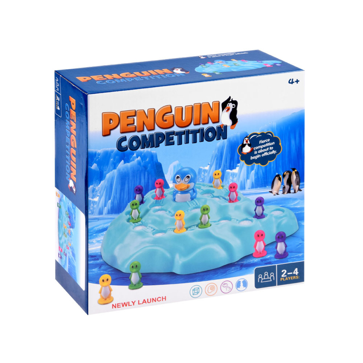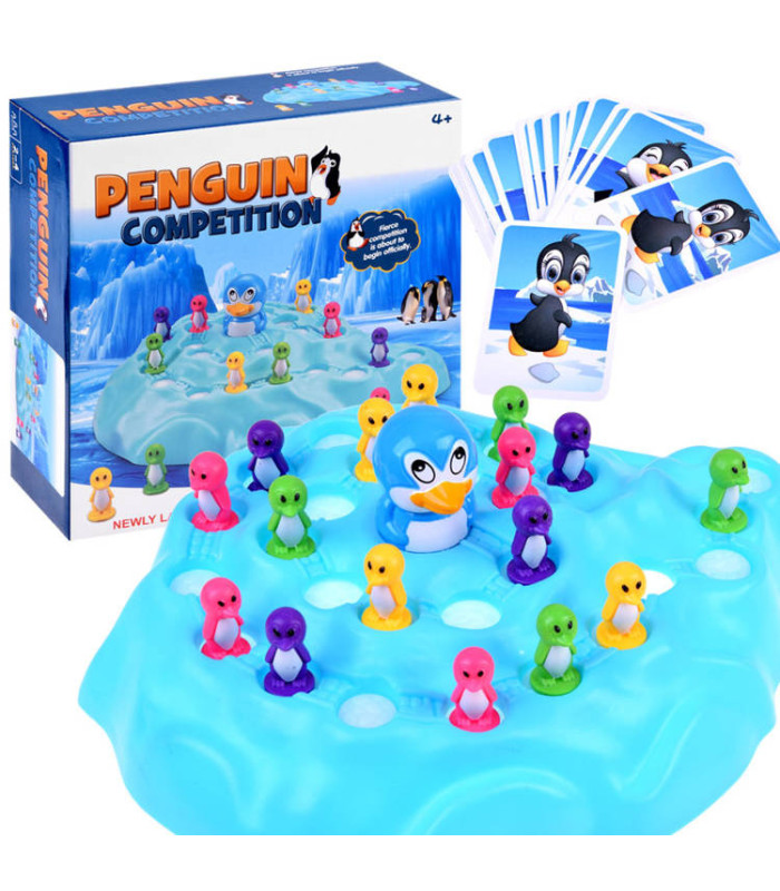Žaidimo tikslas yra užkopti į kalną su didžiuoju pingvinu. Tačiau tai nėra taip paprasta, nes kelyje laukia netikėti spąstai, kurie gali priversti mažus pingvinus slysti žemyn. Jei taip atsitinka, reikia pradėti lenktynes iš naujo! Kortelės dedamos ant stalo, ir pagal ištrauktą kortelę reikia atlikti veiksmus (jei ištraukei pingviną su vienu žingsniu, juda vieną lauką, su dviem – du laukai, su trimis – trys laukai). Jei ištrauksi kortelę su besisukančiu pingvinu, viskas gali pasikeisti! Tas, kuris buvo paskutinis, gali tapti pirmu! Tai nenuspėjama pramoga, kupina emocijų!