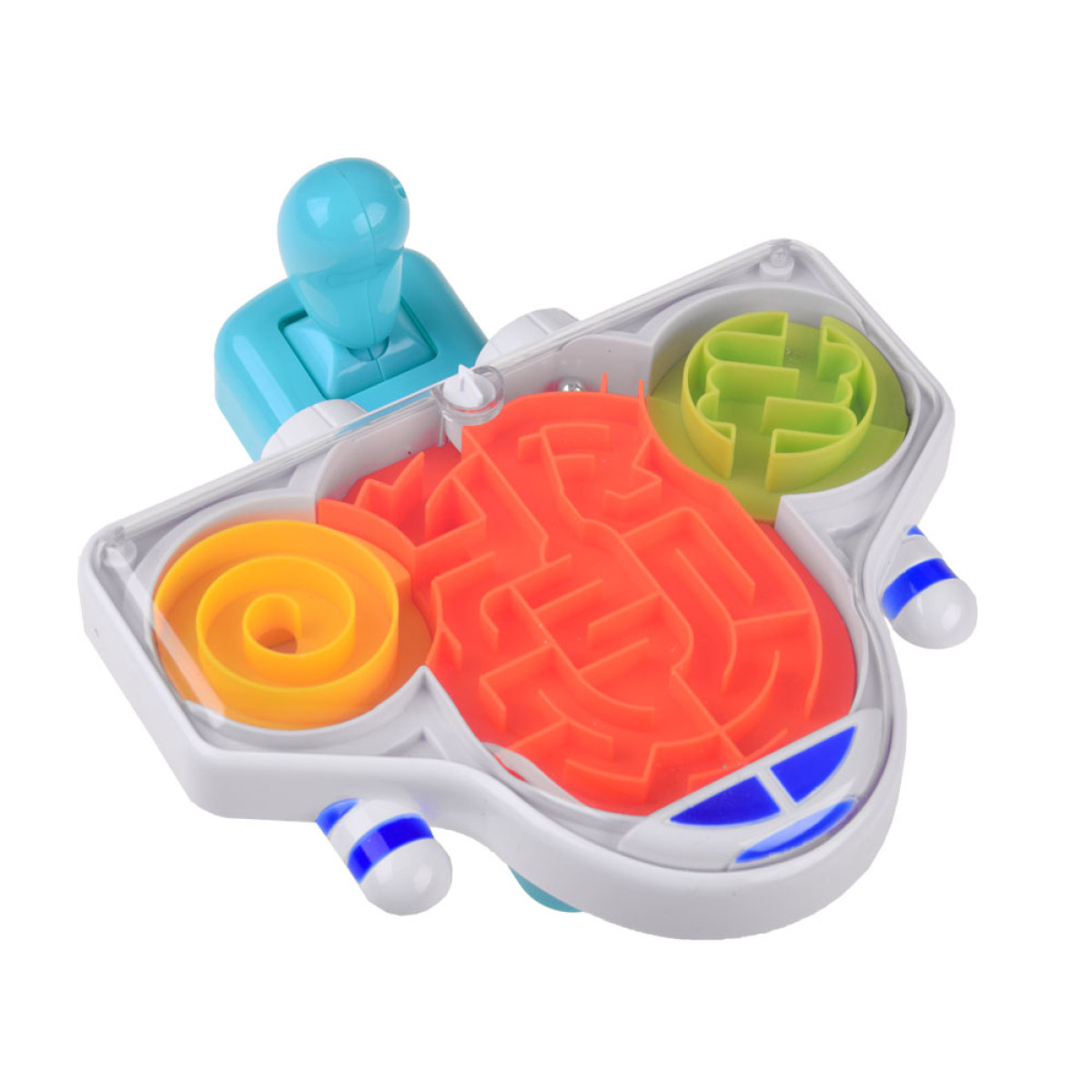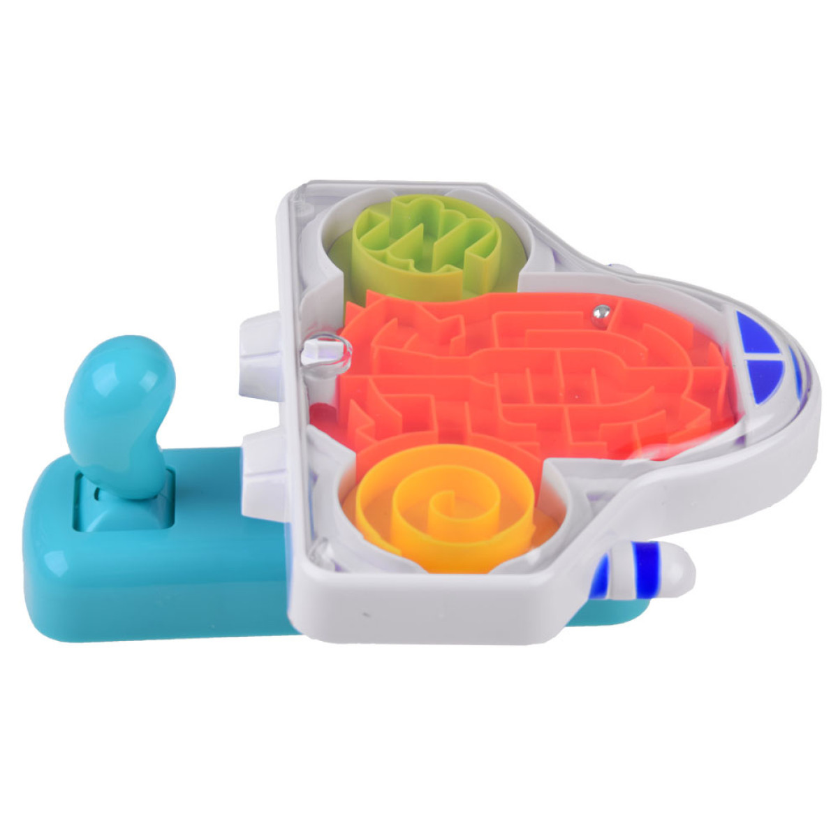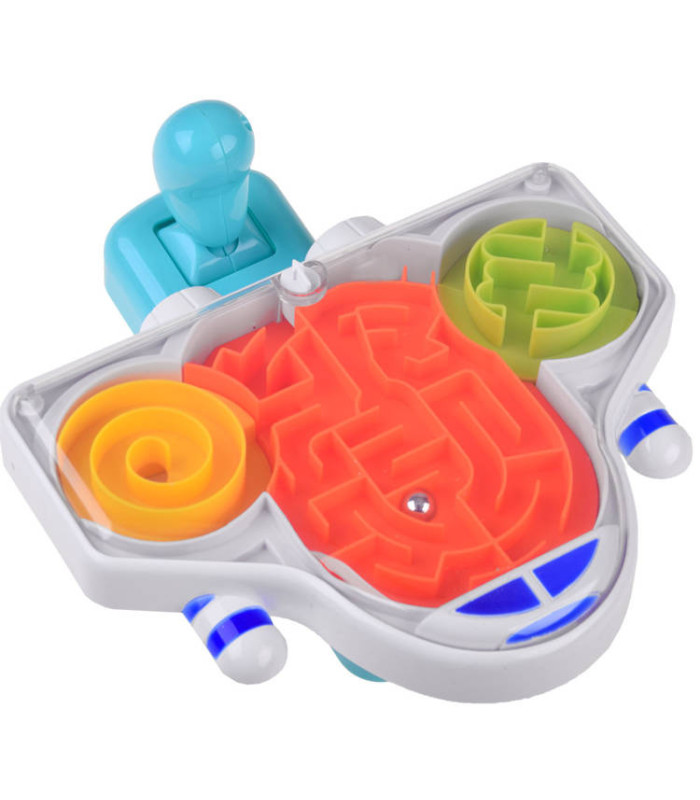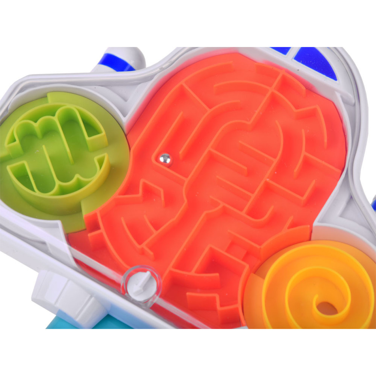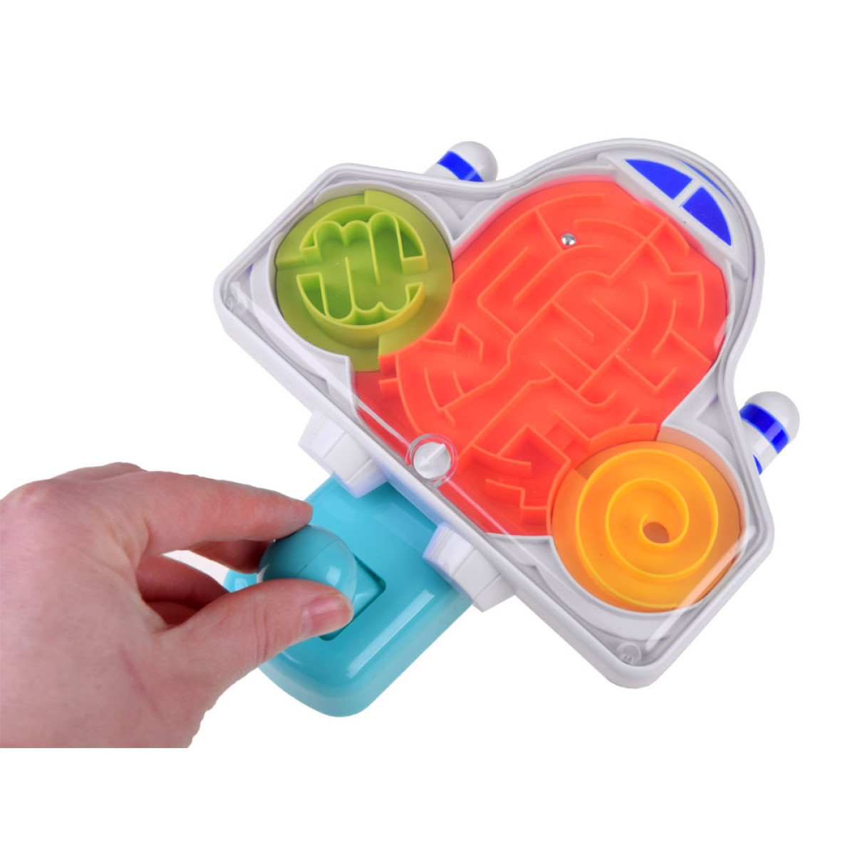 Šis kosminis labirintas raketoje yra puiki pramoga kiekvienam mažajam kosmonautui. Žaislas turi valdymo svirtį, skirtą valdyti metalinį kamuoliuką. Metalinis kamuoliukas turi įveikti labirintą nuo žaliosios zonos per oranžinę iki geltonosios zonos, o tada grįžti atgal.