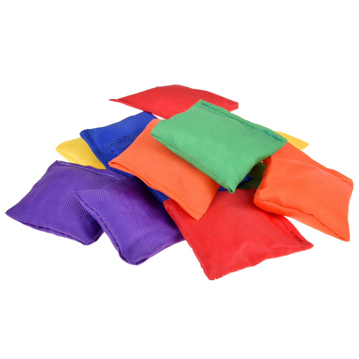 - 12 maišelių su užpildu – puikiai tinka metimams ir tikslumo pratimams. Įvairių spalvų maišeliai padeda sekti taškus ir pažangą.