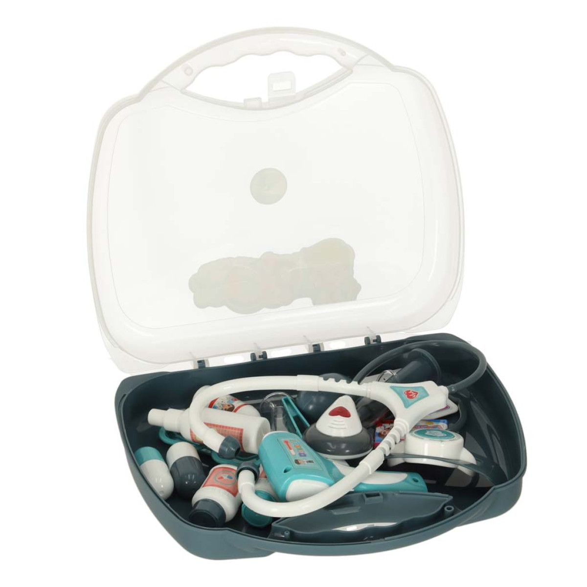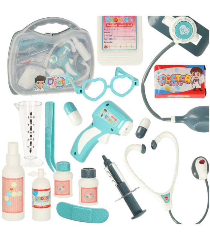 Šis praktiškas gydytojo rinkinys lagamine leidžia pasiimti žaislą bet kur - į darželį, ekskursiją ar pas močiutę. Lagaminas slepia visą priemonių komplektą, kuris sužavės kiekvieną mažylį! Rinkinys apima stetoskopą, termometrą, švirkštą, purškiklį, tabletes, buteliukus su vaistais ir kitus priedus, reikalingus mažojo specialisto budėjimui.