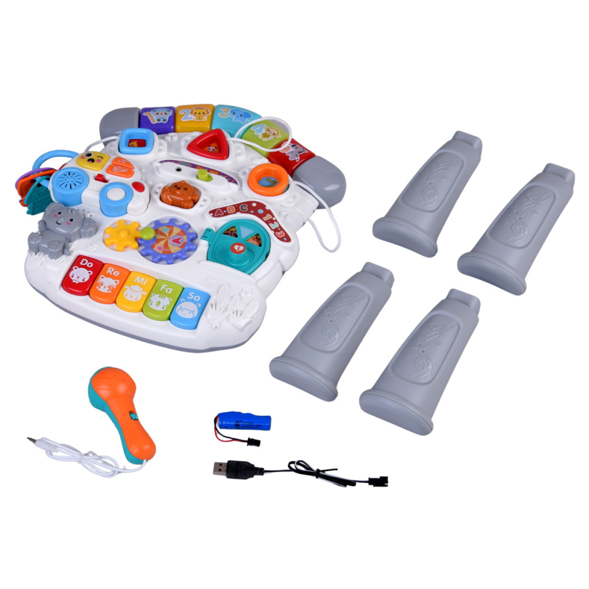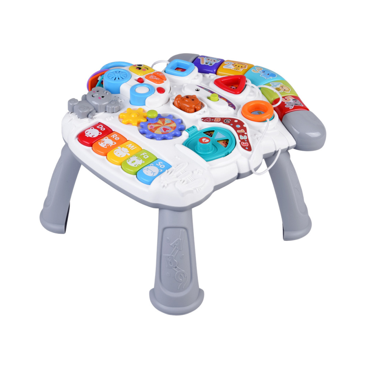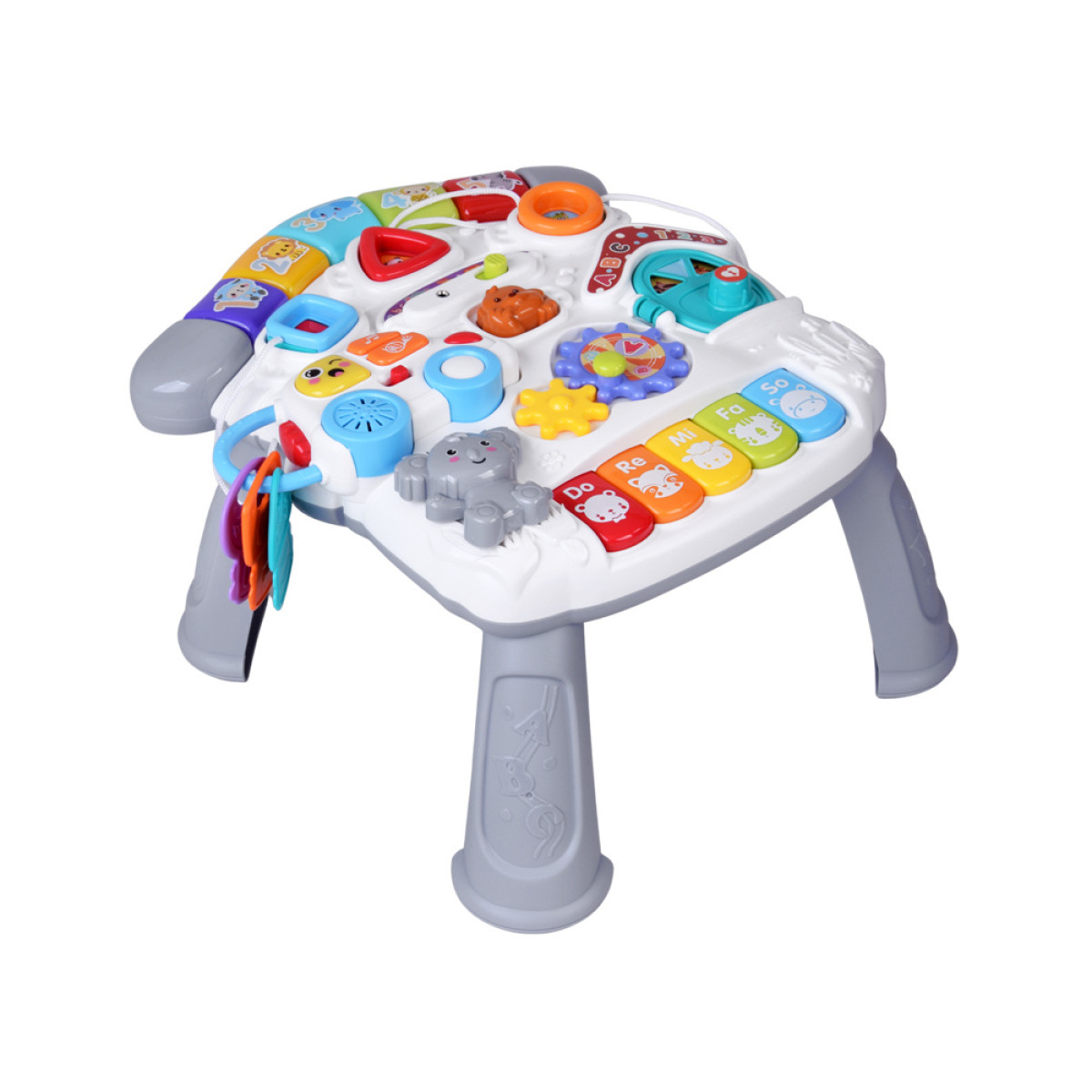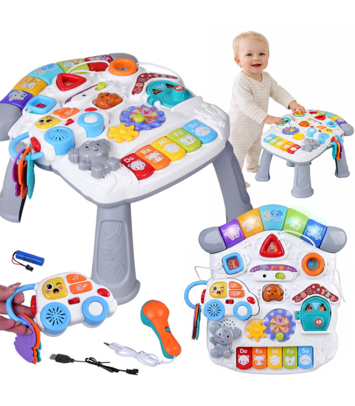 Spalvingas mokomasis staliukas vaikams yra tikras žaidimų centras, kuris suteiks mažyliui daugybę valandų džiaugsmingo ir lavinančio laiko. Turtingai įrengtas interaktyvus panelis skatina vaiką atrasti naujas funkcijas, garsus ir judančius elementus. Žaislas pagamintas iš aukštos kokybės medžiagų, draugiškų ir ryškių spalvų, kurios pritraukia vaiko dėmesį ir skatina smalsumą.