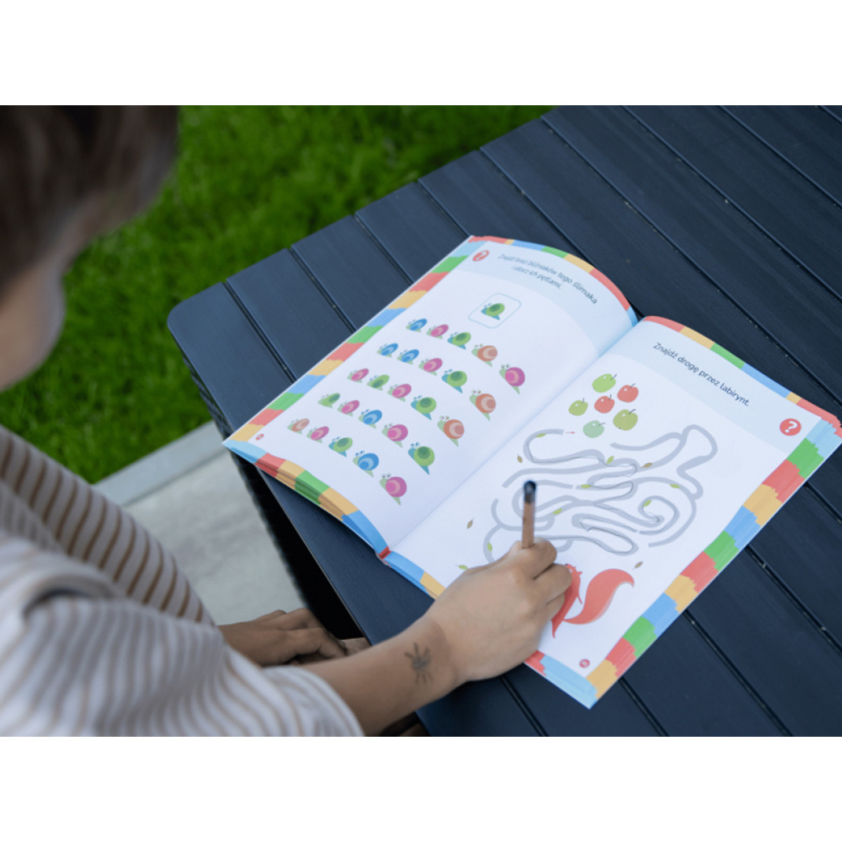 Kiekvienas knygos puslapis – tai naujas iššūkis: labirintai, mįslės, atitikmenų ir skirtumų užduotys padeda vaikui lavinti pažinimo įgūdžius ir pasiruošti mokymuisi darželyje.