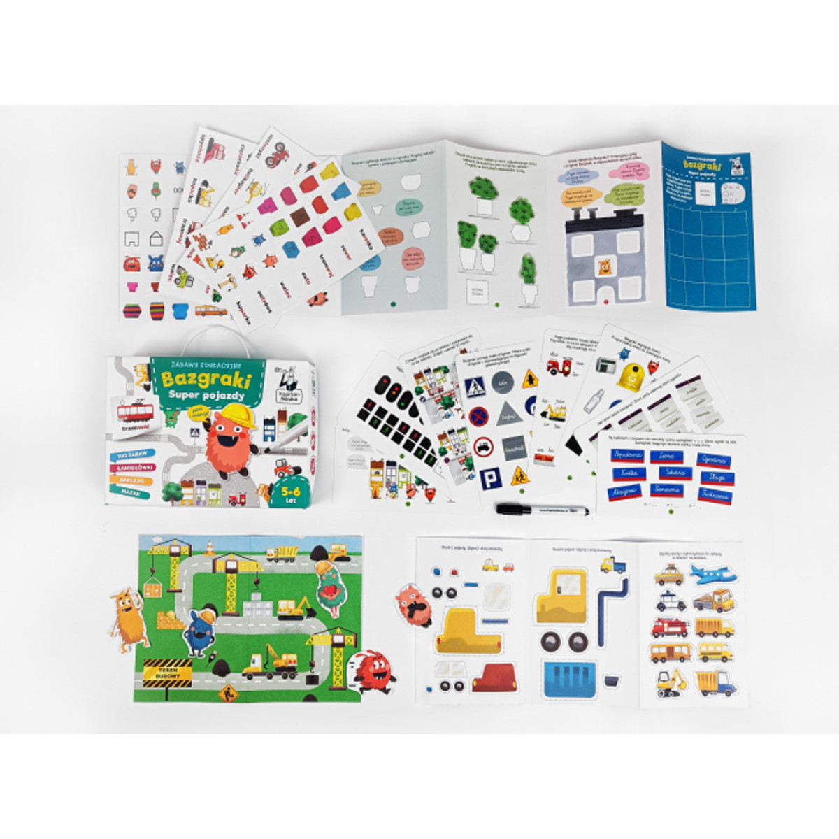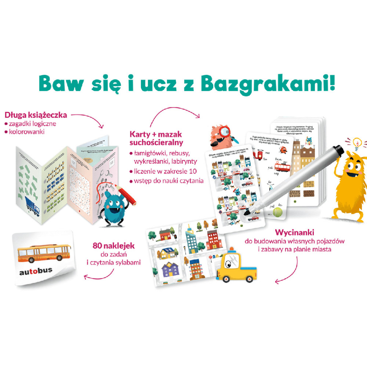 Kapitanas Nauka Bazgraki Super Transporto Priemonės yra kūrybinių ir edukacinių žaidimų rinkinys, kuris leidžia vyresniems ikimokyklinio amžiaus vaikams lavinti skaičiavimo, rašymo, skaitymo, loginio mąstymo įgūdžius ir pažinti miesto erdvę.