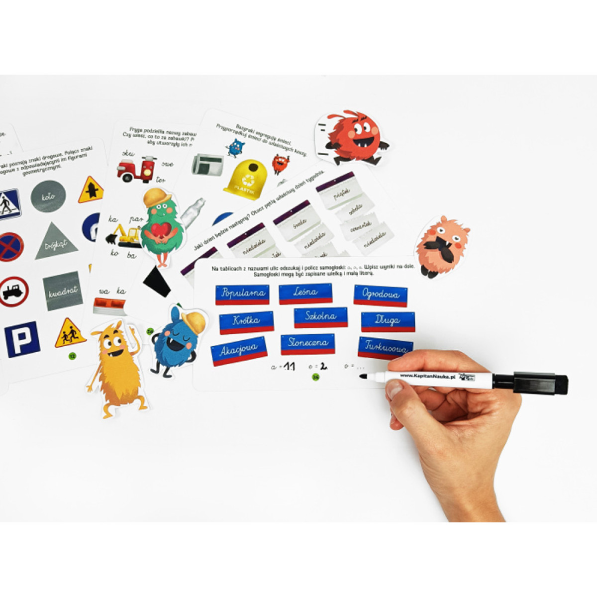- sauso trynimo žymeklis ir kortelės su galvosūkiais, rebusais, išbraukos žaidimais, labirintais.