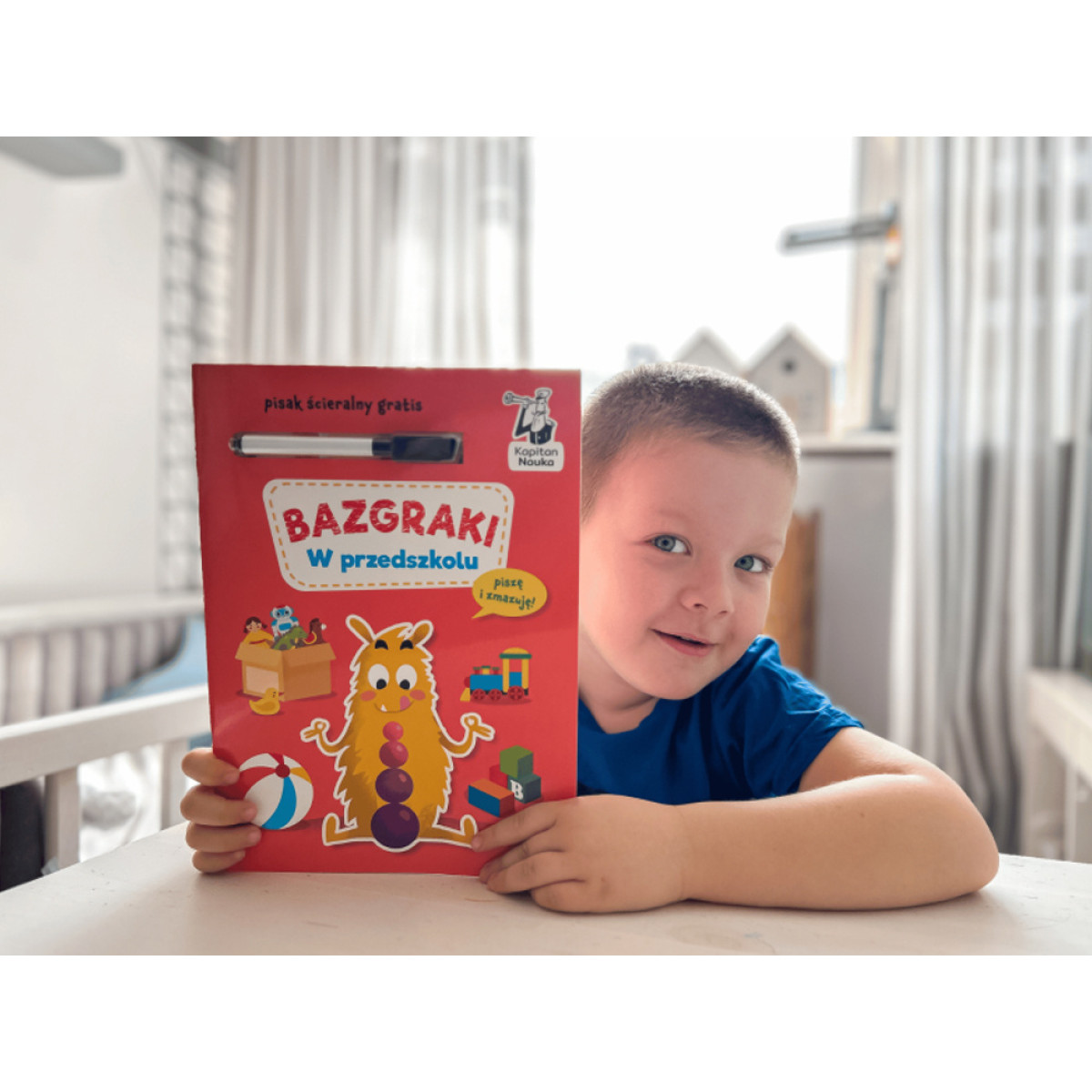 „Bazgrakai darželyje“ yra užrašų knygelė, pilna žaidimų ir galvosūkių, sukurta specialiai darželinukams. Vaikai prisijungia prie Bazgrakų ir sprendžia įdomias užduotis, lavindami pastabumą, loginį mąstymą ir koncentraciją.