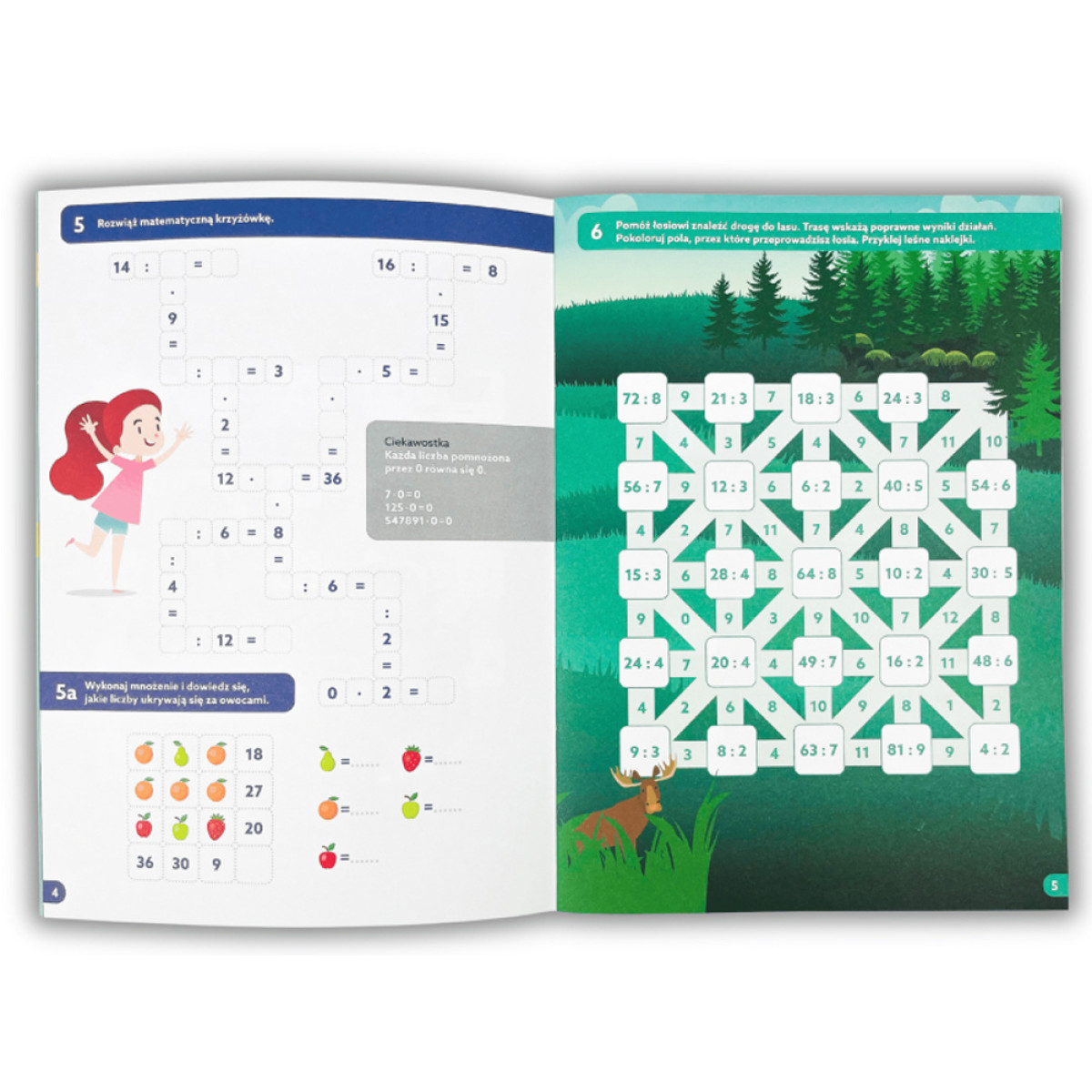 Knygelės viduje yra kruopščiai parengti pratimai, padedantys įtvirtinti veiksmus su skaičiais, nuo paprastų pavyzdžių iki tekstinių uždavinių, kurie ugdo loginį mąstymą. Sunkumo lygio gradacija leidžia pritaikyti medžiagą pagal vaiko gebėjimus, taip užtikrinant tvirtą pagrindinių aritmetinių veiksmų suvokimą.