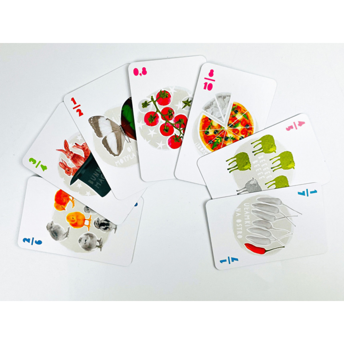 Ulamki. Kortų žaidimas yra unikali edukacinė priemonė, kuri patraukliai ir lengvai padeda vaikams suprasti trupmenas bei išmokti jas lyginti ir užrašyti. Dėl dinamiškos žaidimo formos matematika tampa lengva, logiška ir tikrai įtraukianti!