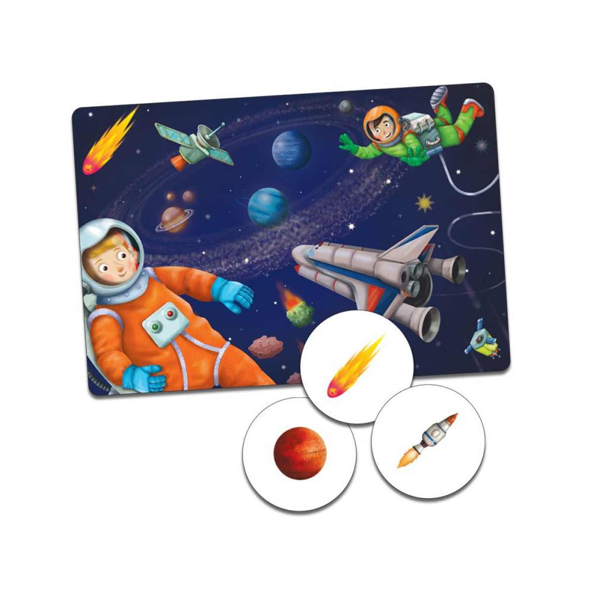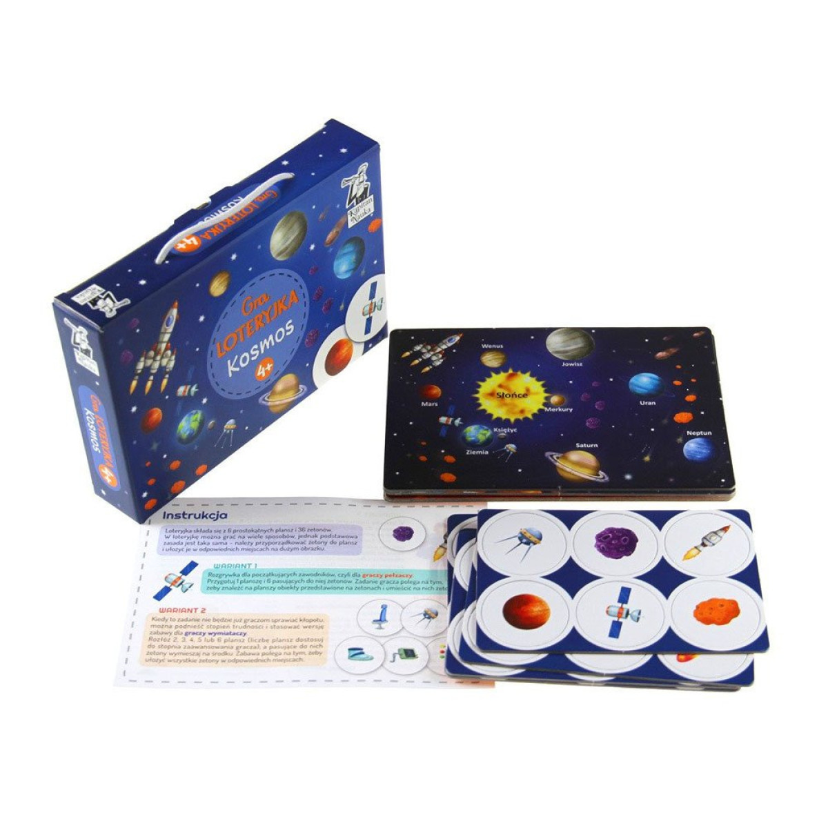 Žaidimas Loteryjka Kosmosas skirtas vaikams nuo ketverių metų amžiaus. Jis lavina pastabumą, koncentraciją, preciziškumą ir regos-judesių koordinaciją, taip pat suteikia žinių apie visatą.