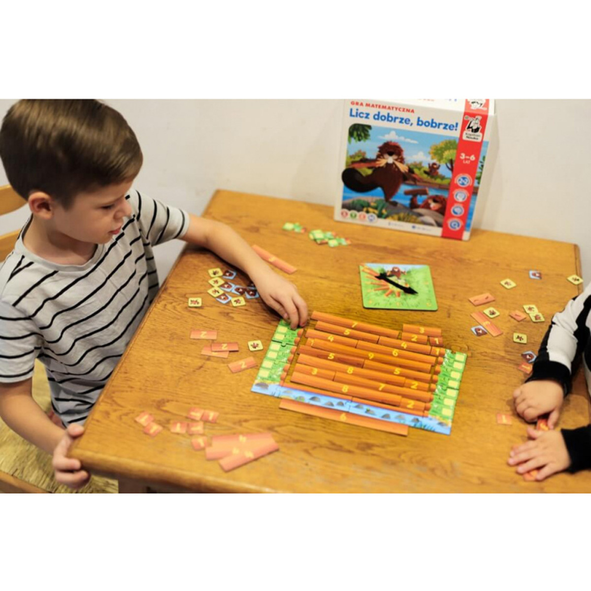 Edukacinis matematinis žaidimas "Gerai skaičiuok, bebrė!" skirtas ikimokyklinio amžiaus vaikams, kurie prisijungia prie išradingų bebrų, statydami užtvanką ir kartu mokosi skaičiuoti nuo 1 iki 20 bei lavina loginį mąstymą.