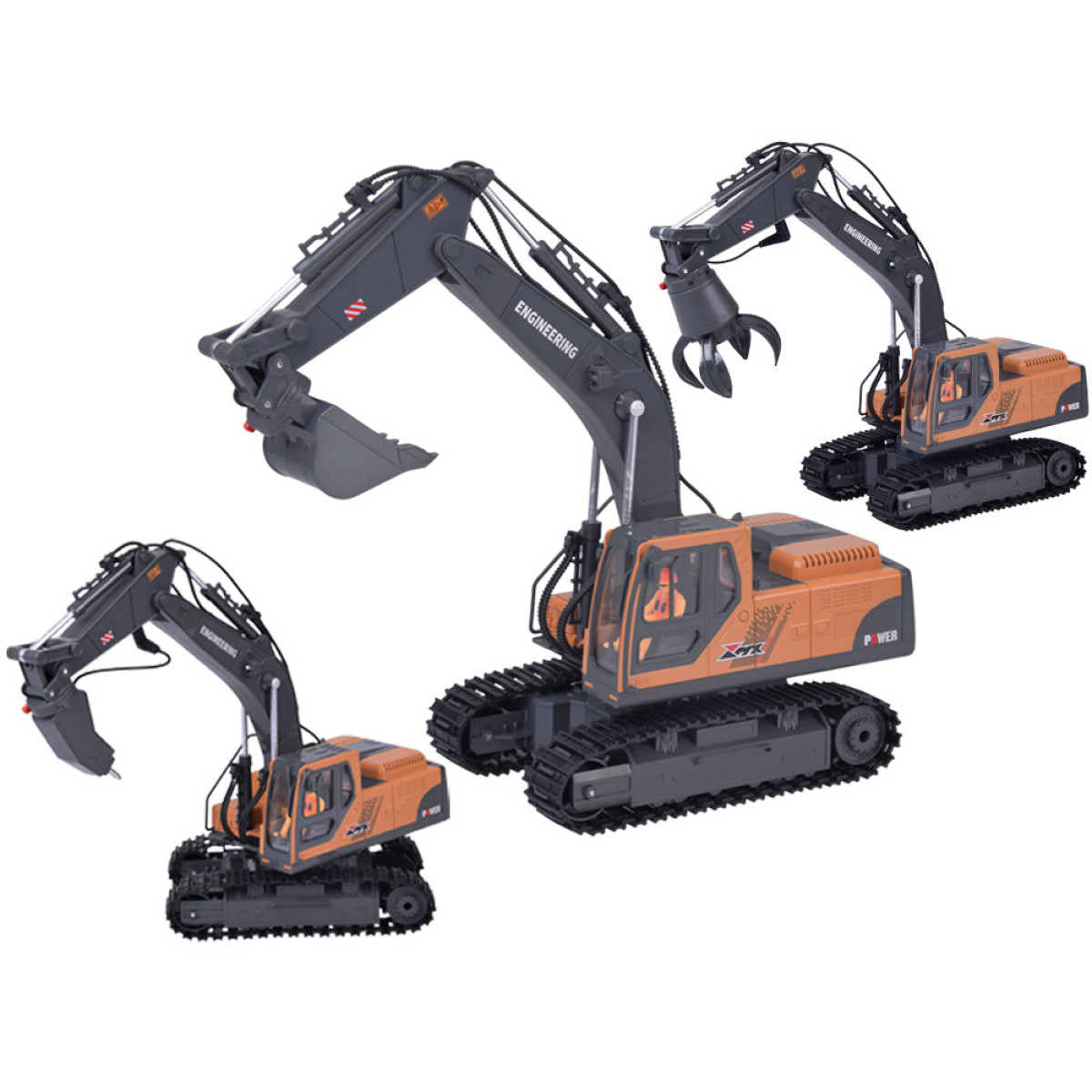 Nuotoliniu būdu valdoma RC ekskavatorius 3-in-1 – realistiška statybinė mašina vaikams
