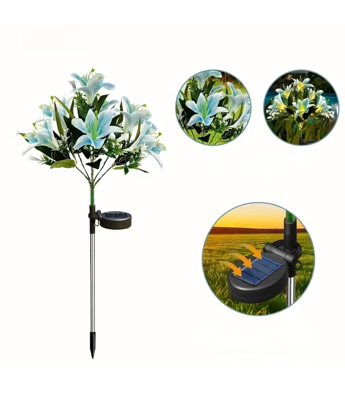 Saulės energija maitinama sodo lempa, kuri imituoja lelijos gėlės formą, yra puikus pasirinkimas jūsų sodui. Ši lempa yra ne tik funkcionali, bet ir estetiška, todėl puikiai papuoš jūsų aplinką.