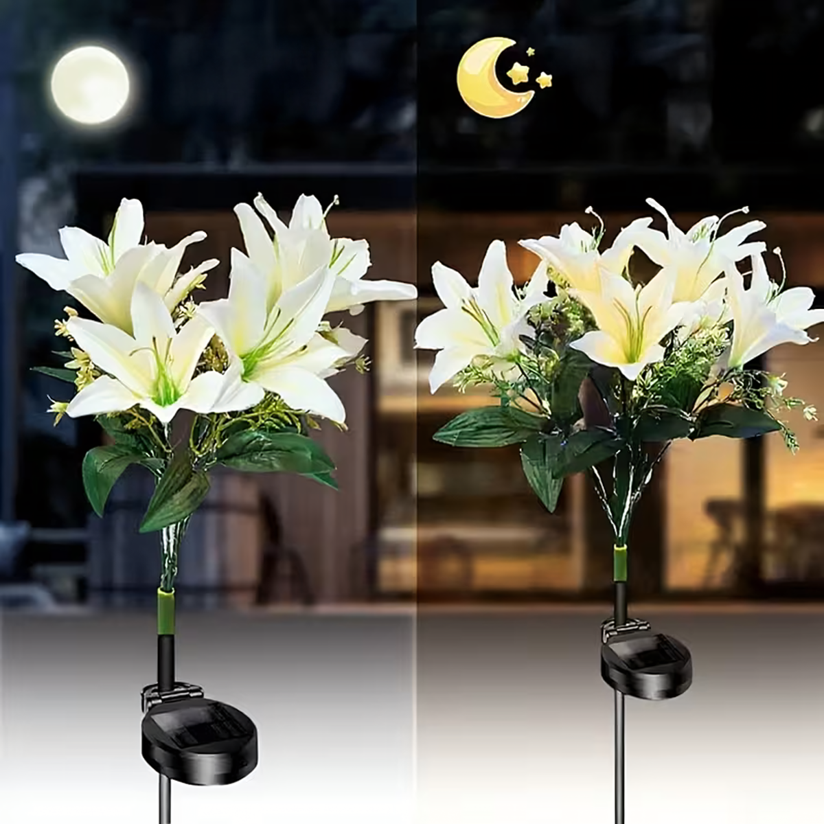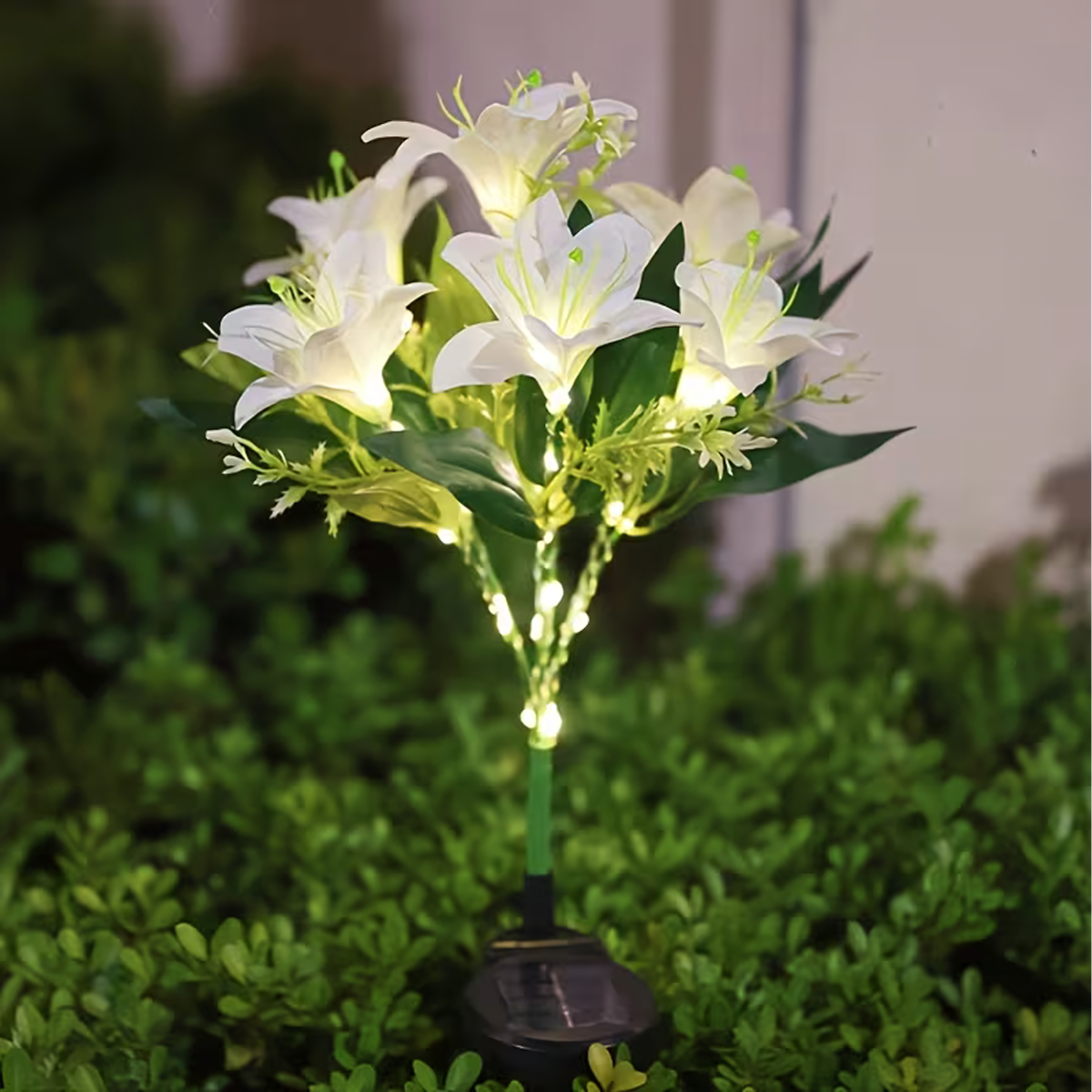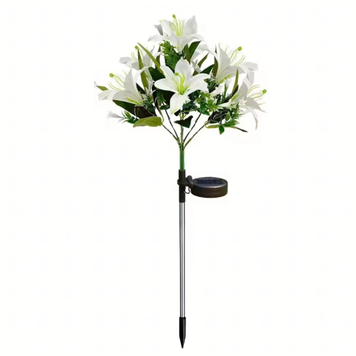Pasiūlymas apima 1 balto lelijos formos saulės lempą.
