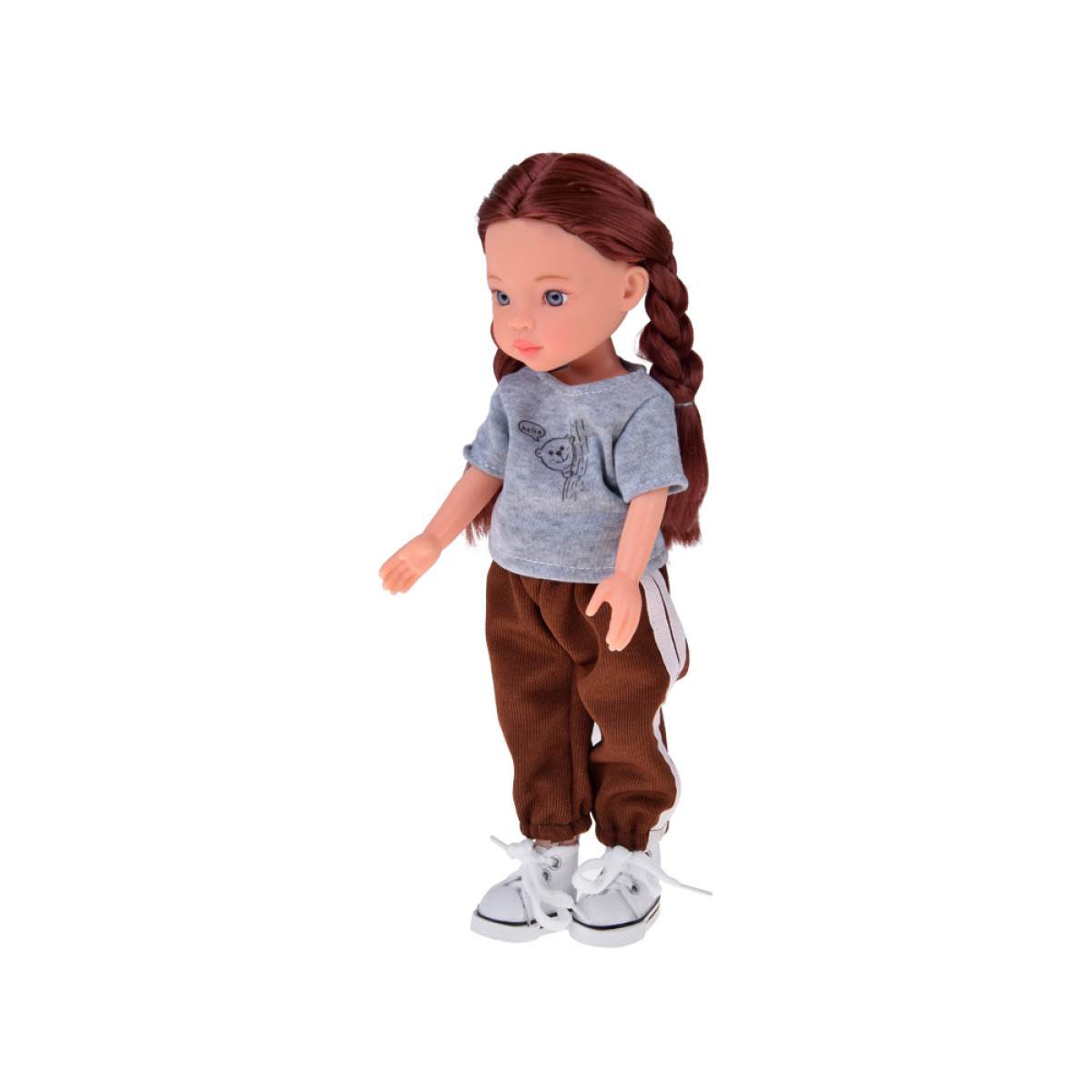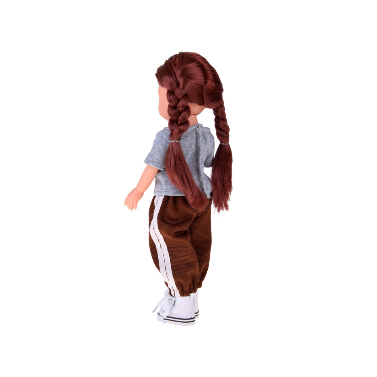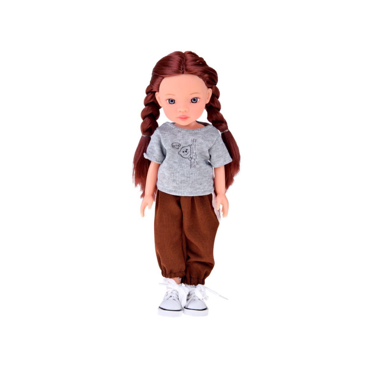 Ši išskirtinė lėlė sužavės kiekvieną mergaitę! Ji turi ilgus, tankius šatenų plaukus, kuriuos galima šukuoti ir kurti įvairias šukuosenas. Aprengta patogiu, pilku marškinėliu su spauda, rudomis sportinėmis kelnėmis su baltais lampasais bei baltais sportiniais batais su raišteliais. Jos stilius derina modernumą ir komfortą, puikiai tinka aktyvioms, kasdienėms nuotykių žaidimams.