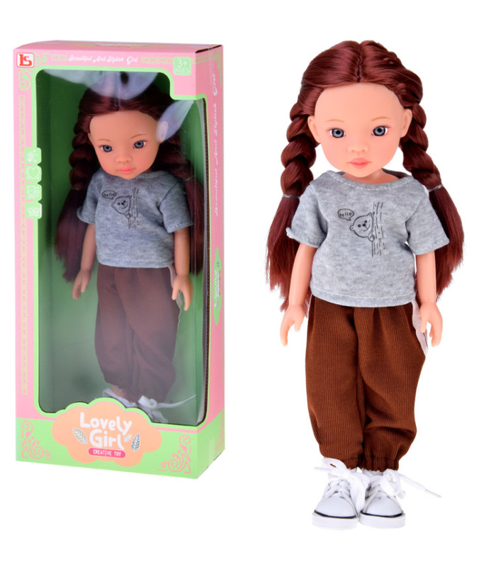 Lovely Girl lėlė su ilgais šatenų plaukais sportiniame kostiume!