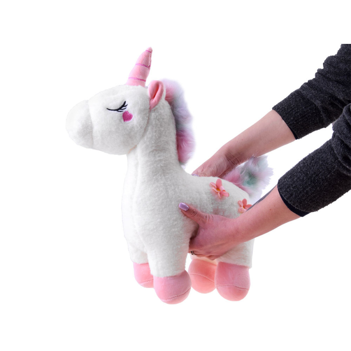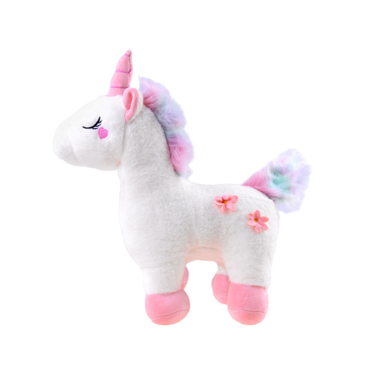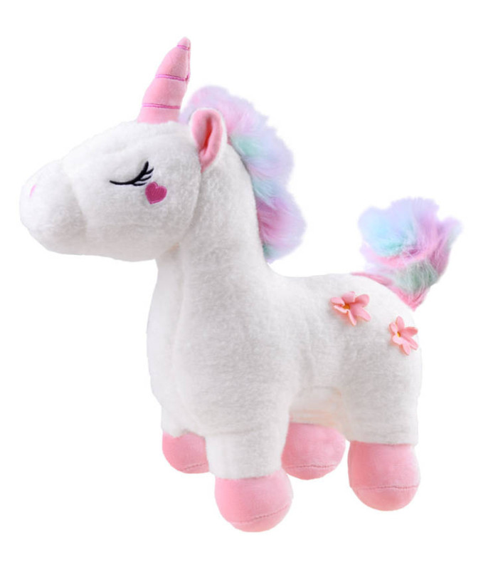 Magiškas pliušinis vienaragis yra žaislas, sukurtas apkabinimams. Pliušinė žaislas pagamintas iš minkštos medžiagos, dailių pastelinių spalvų. Vienaragio galvą puošia rožinis minkštas ragas, spalvinga rožinė-mėlyna karčiai bei širdelė ant skruosto, o šonuose – du rožiniai žiedeliai. Pūkotas uodega taip pat išlaikytas rožinės-mėlynos spalvų derinyje.