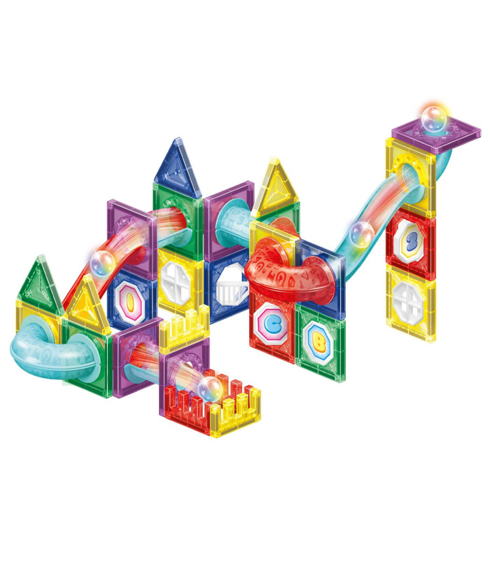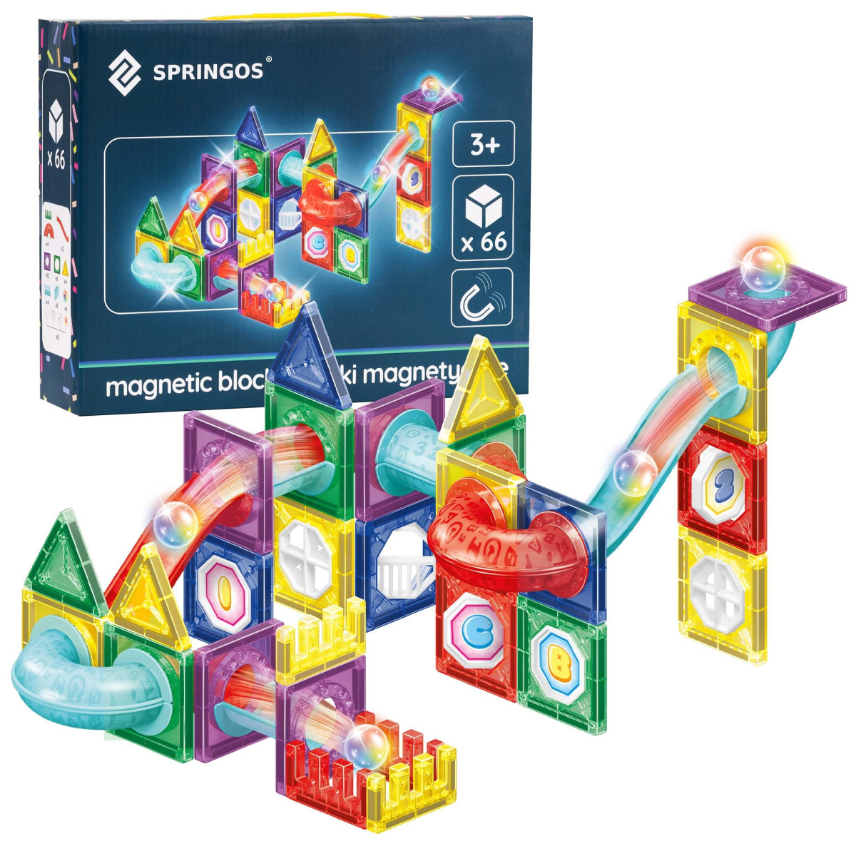 Springos KG0063 yra įvairiaspalvis magnetinis konstruktorius su 66 dalimis, suteikiantis vaikams galimybę kurti įvairias konstrukcijas, tokias kaip bokštai, keliai ar griuvėsiai su interaktyviais elementais. Dalys lengvai susijungia, nes kiekvienas elementas turi magnetus. Žaidimas ugdo kūrybiškumą, loginį mąstymą ir smulkiąją motoriką, taip pat siūlo papildomą pramogą su LED šviesos efektais judančiuose rutuliukuose. Konstravimas yra saugus ir tinkamas vaikams nuo 3 metų.