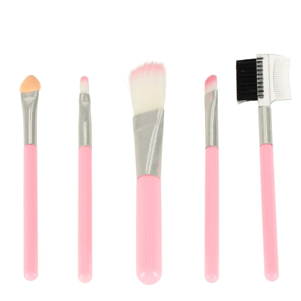 - 5 makiažo šepetėliai (didysis šepetėlis, 3 akių šepetėliai, šukelės antakiams ir blakstienoms)