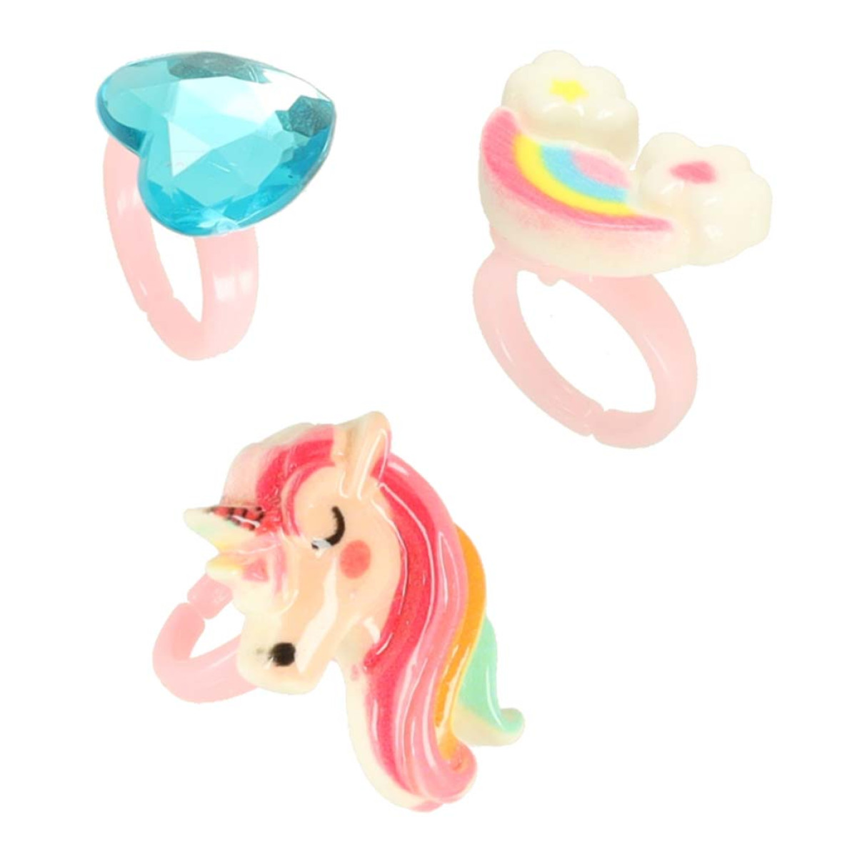 - 3 žiedai (širdelė, vaivorykštės debesys, vienaragis)