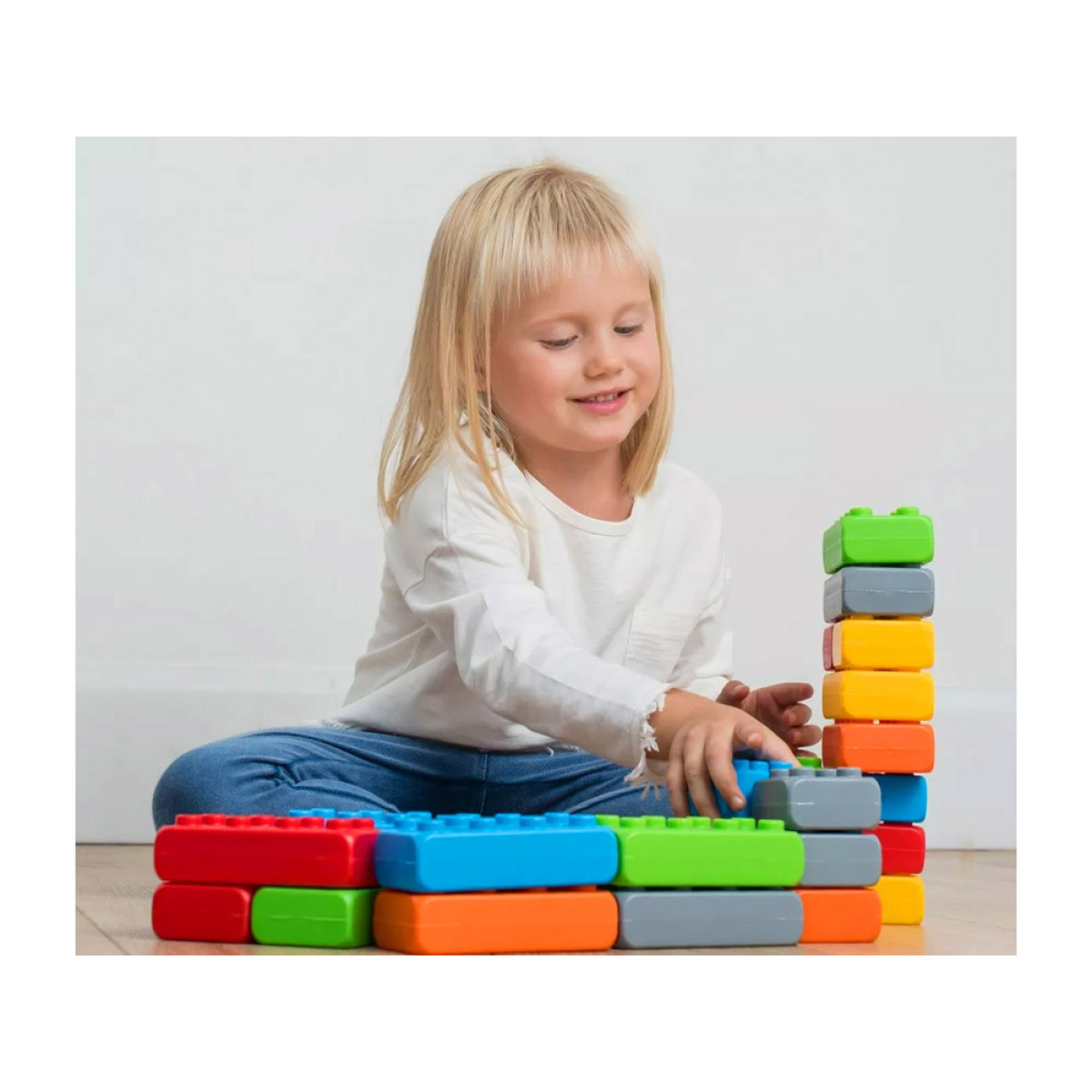 Šis spalvingas konstrukcinių blokelių rinkinys yra sukurtas taip, kad būtų kuo draugiškesnis ir saugesnis vaikams. Blokeliai yra pagaminti iš plastiko, jų forma ir dydis puikiai pritaikyti vaikų rankoms, o spalvos yra švelnios ir malonios akiai.