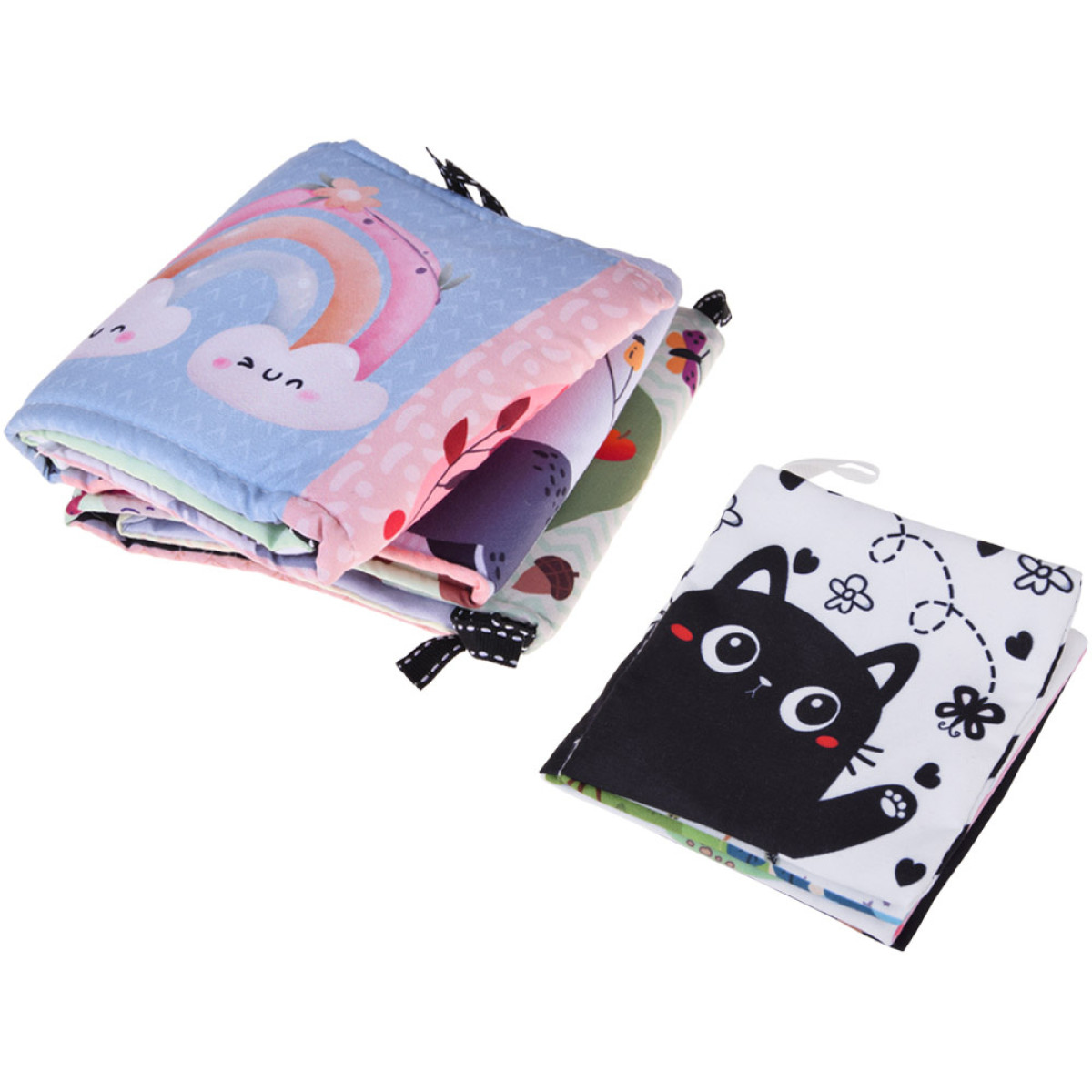 • Pojūčių stimuliavimas – įvairios spalvos, kontrastingi raštai, minkštos ir kietesnės medžiagų tekstūros bei garsai ir šiugždantys elementai lavina klausą, regą ir lytėjimą.