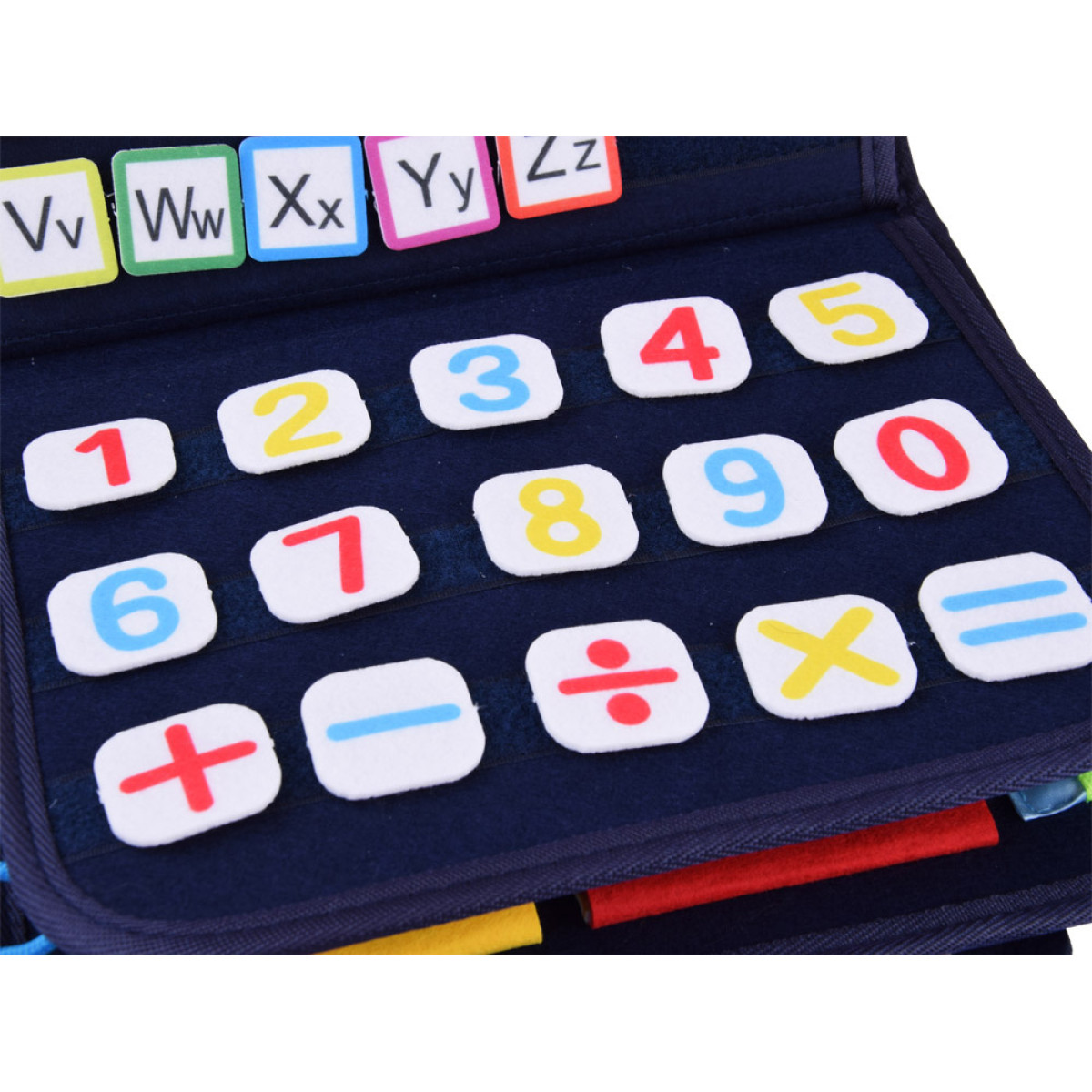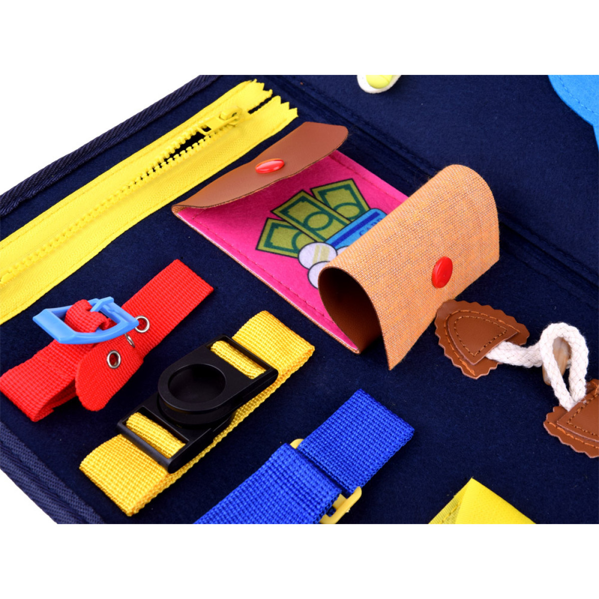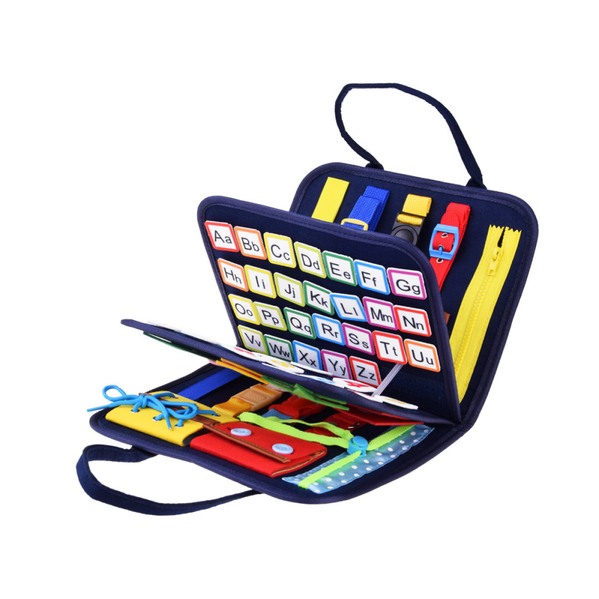 Medžiaginė manipuliacinė knygelė skirta jauniausiems vaikams. Žaislas knygelės formos, turintis įvairių užtrauktukų, sagtelių ir užsegimų, padeda lavinti rankų įgūdžius, mokytis atpažinti spalvas, formas, skaičius ir raides. Naudos: