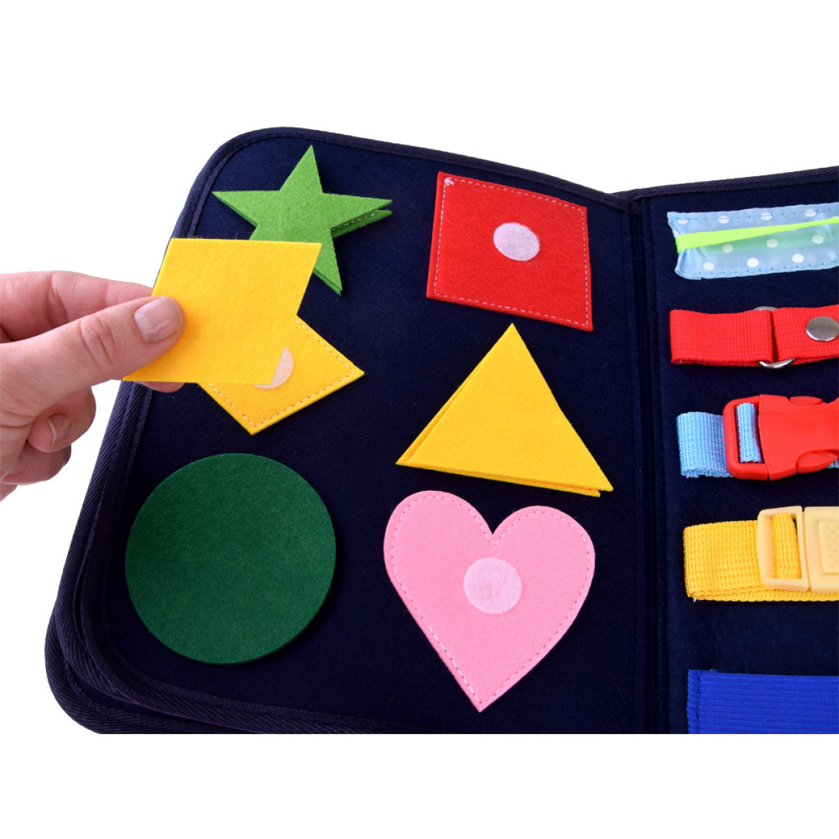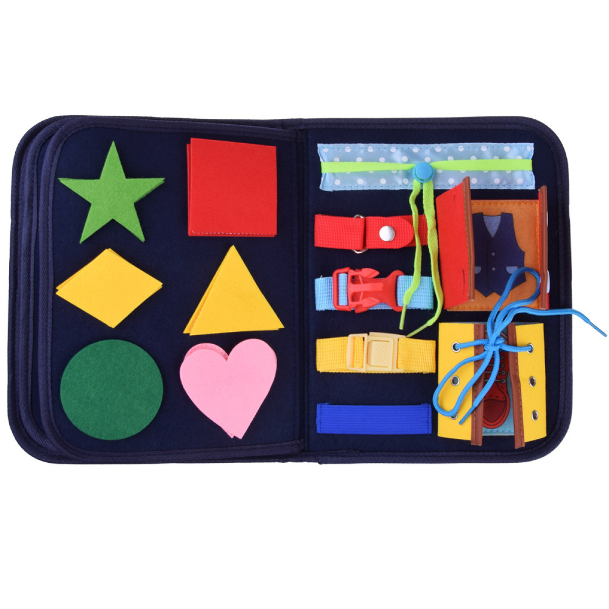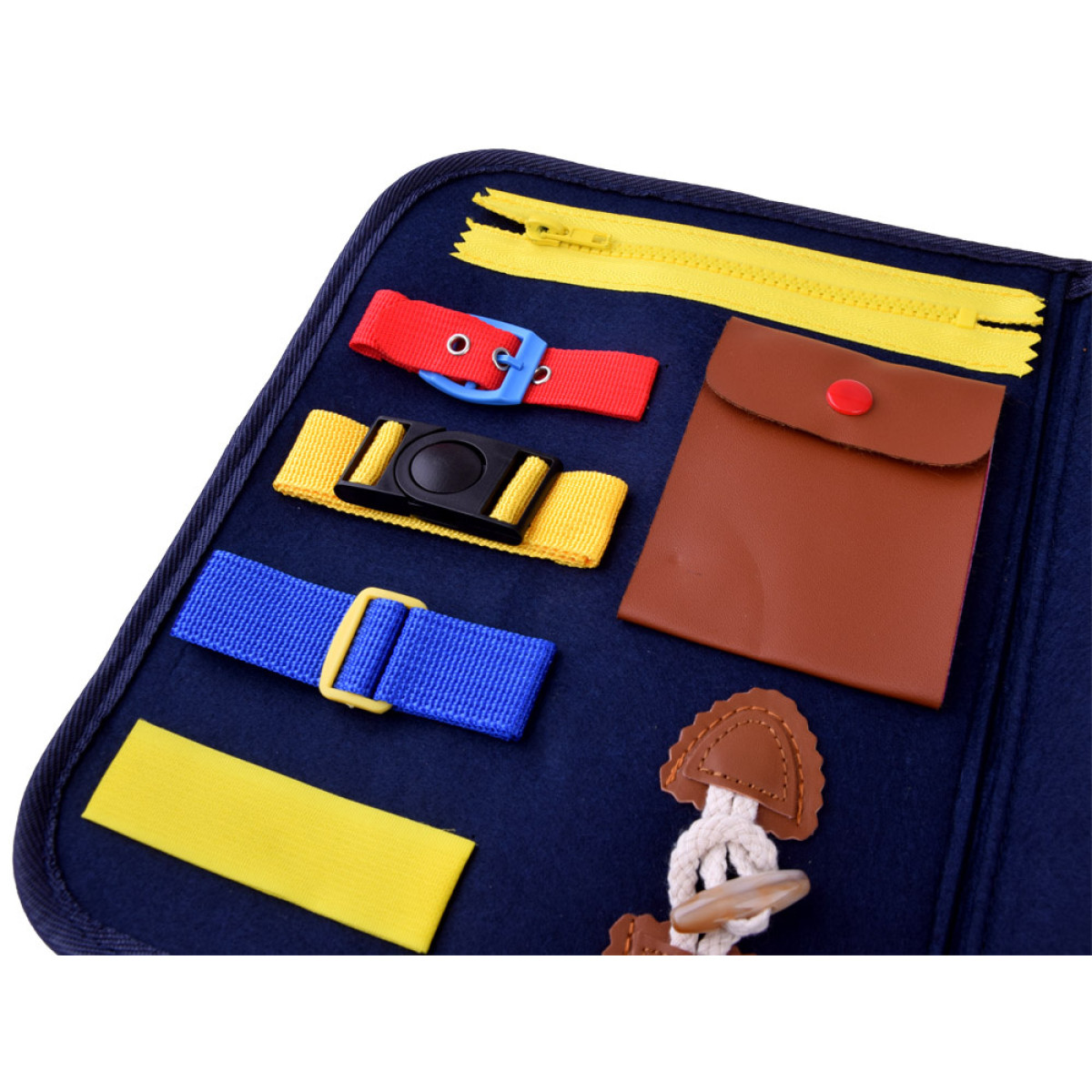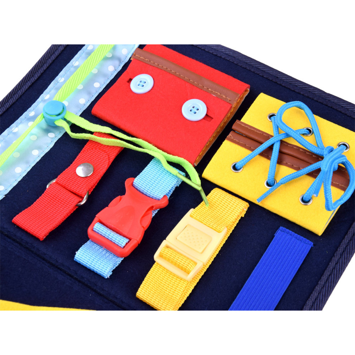 Medžiaginė manipuliacinė knygelė skirta jauniausiems vaikams. Žaislas knygelės formos, turintis įvairių užtrauktukų, sagtelių ir užsegimų, padeda lavinti rankų įgūdžius, mokytis atpažinti spalvas, formas, skaičius ir raides. Naudos: