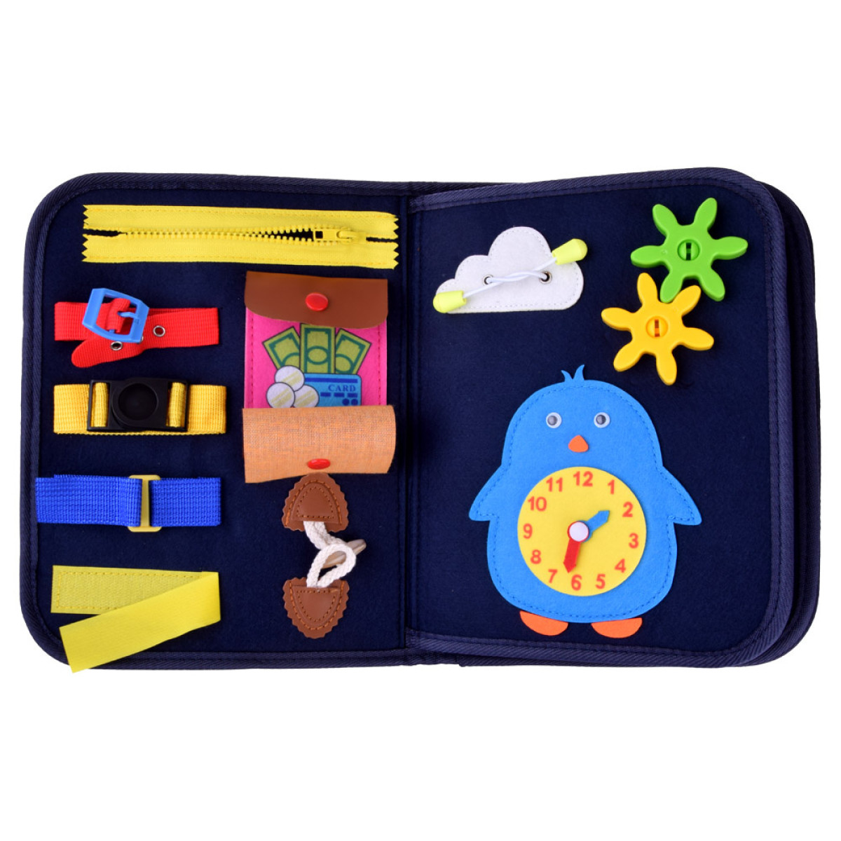 Knygelė yra pagaminta iš patvarios medžiagos, o ryškios spalvos ir įdomus dizainas tikrai patiks vaikams. Manipuliavimas užtrauktukais užims vaiko dėmesį ilgam laikui. Žaislas yra supakuotas į folijos pakuotę.
